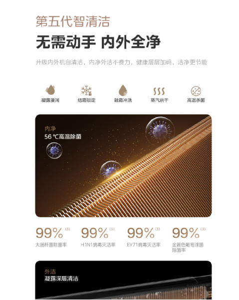 美的具备美芝压缩机、威灵电机等自研核心部件产业链,部件与整机适配度更高,长期运行的稳定性与一致性表现优异,自研技术优势突出;可提供暖通家电核心部件系统级解决方案,压缩机、电机、芯片、阀等产品可应用于空调热泵、洗衣烘干、家用及车载冰箱等多领域。美的覆盖入门性价比到全品类旗舰全产品线,不同配置对应不同定价,可满足不同消费群体的使用需求。外机采用自研美芝压缩机,整机使用寿命长;冷凝器采用双排铜管设计,散热能力强,在高温环境下也能高效运行;电子膨胀阀精准控制冷媒流量,确保制冷效果,避免温度波动。