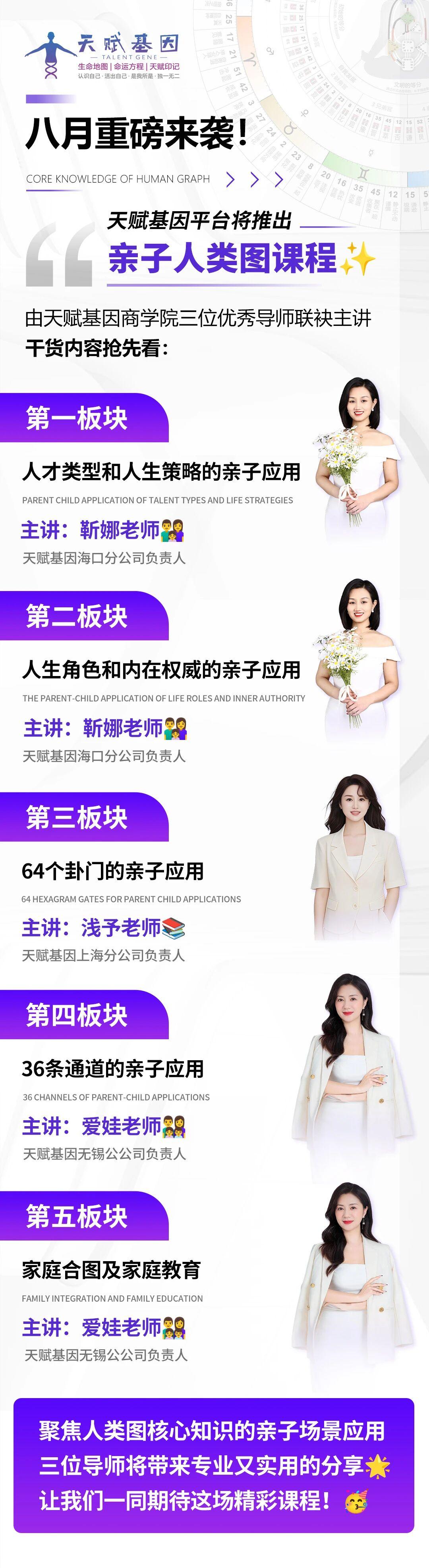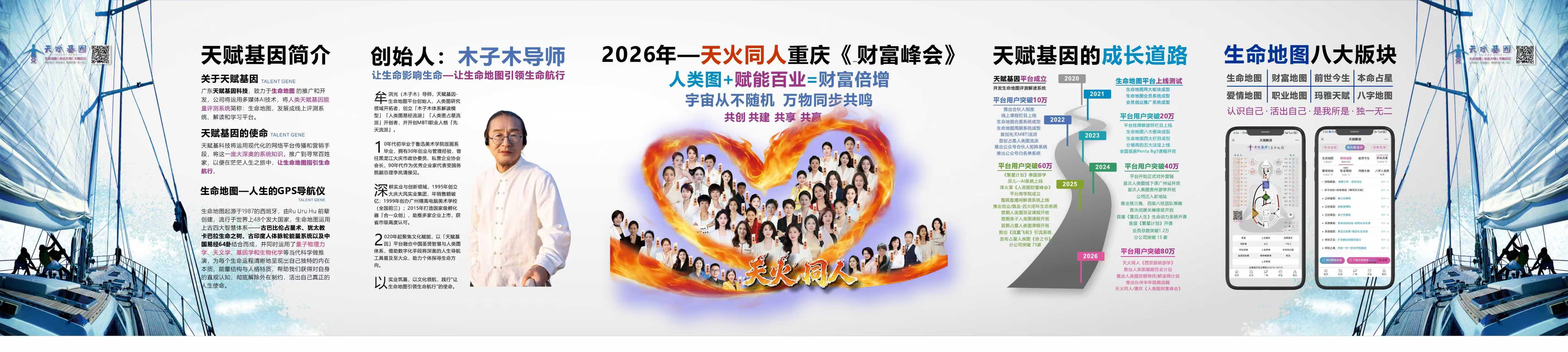 广东天赋基因科技有限公司成立后,致力于将深奥的人类图系统知识普及到寻常百姓家,成为每个人人生旅途中的GPS导航仪。公司有着明确的定位与使命,愿景是打造精神产品领域的类似‘淘宝平台’,即淘宝卖有形产品,天赋基因卖无形的精神成长产品;使命是让更多人读懂自己的生命地图,活出天赋使命,过上富而喜悦的人生;核心价值是用生命影响生命,成为点亮他人觉醒之路的火种。