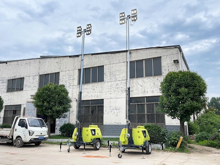 9米移动照明车以其特定的高度优势,为大面积的场地提供了良好的照明条件。9米的高度使得灯光能够覆盖更大的区域,避免了照明死角。在一些大型的仓储物流中心、港口码头等场所,9米移动照明车能够为货物的装卸、运输等工作提供清晰的照明环境。