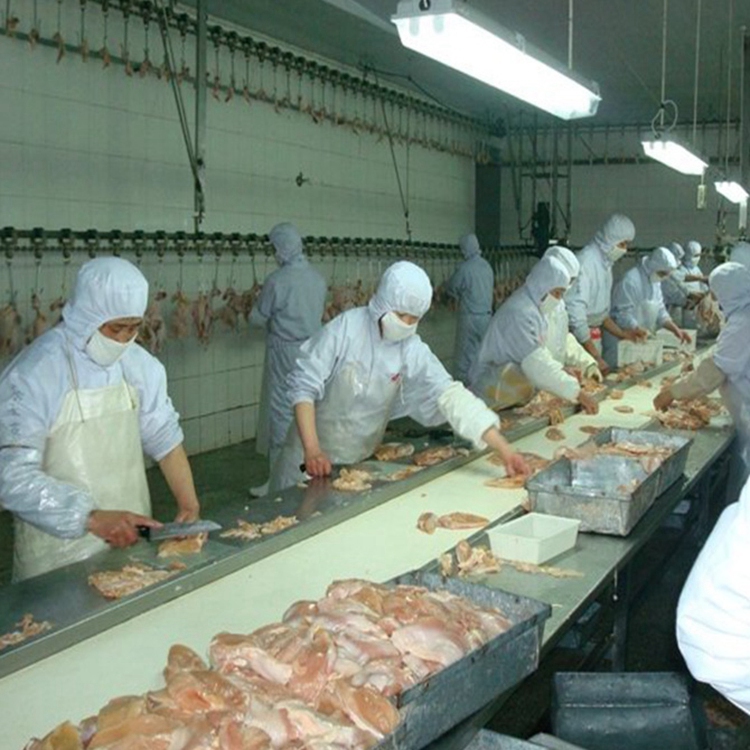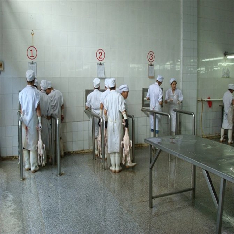 鸡屠宰流水线是山东壹九八六工业装备有限公司的核心产品之一。该流水线采用先进的自动化技术,能够实现鸡的宰杀、脱毛、开膛、清洗等一系列工序的自动化操作。其特点在于高效、精准、卫生。高效体现在每小时能够处理大量的鸡只,大大提高了屠宰效率;精准方面,流水线的各个环节都经过精心设计和调试,能够准确地完成每一个操作步骤,保证了产品的质量稳定性;卫生方面,流水线采用了优质的材料和先进的清洗技术,能够有效防止细菌滋生,确保鸡肉的食品安全。鸡屠宰流水线广泛应用于各类养鸡场、屠宰场以及食品加工企业,为企业提高生产效率、降低生产成本提供了有力的支持。