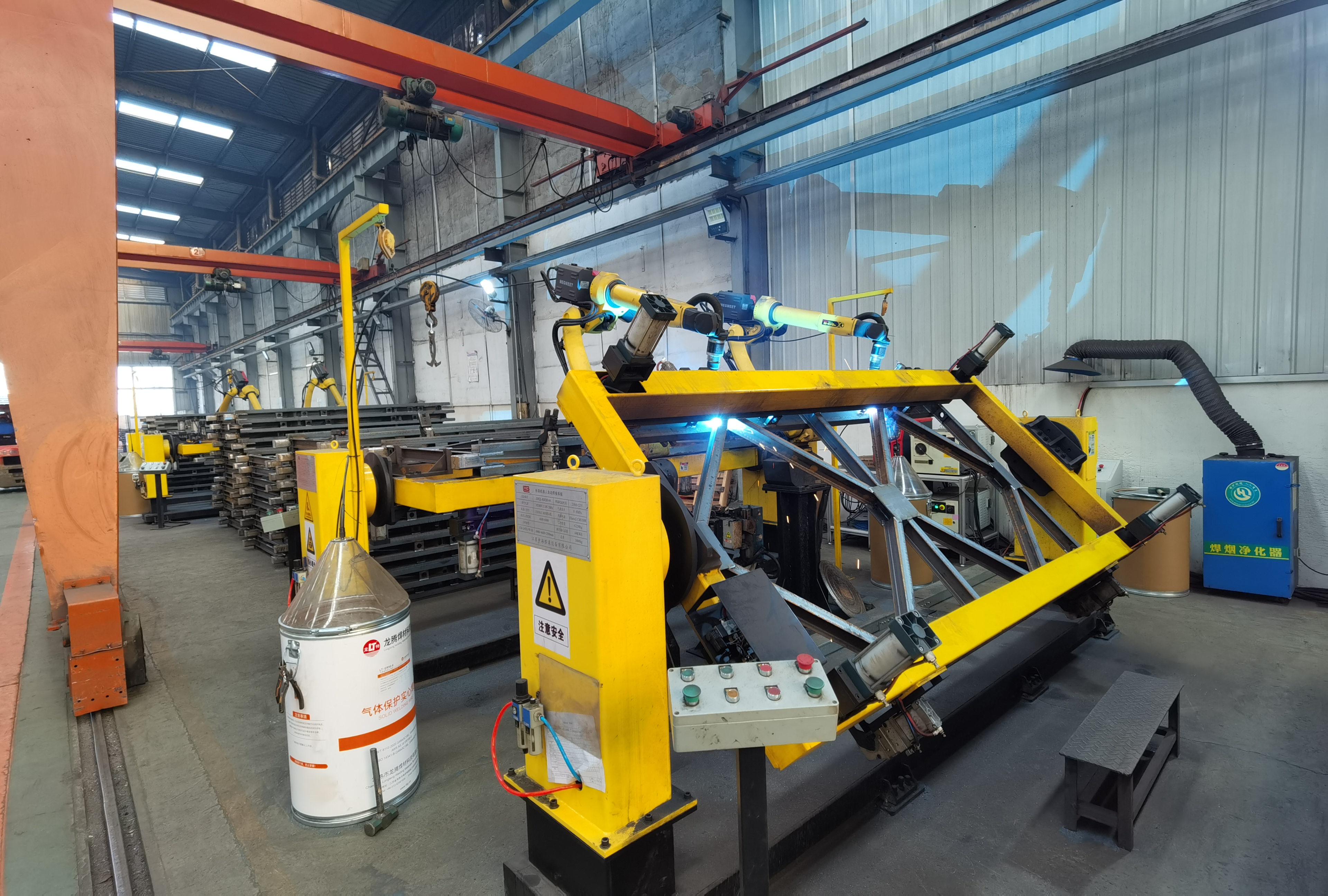 公司的清枪站能够及时清理焊枪上的杂质,保证焊接质量的稳定性。变位机可以根据焊接需求调整工件的位置和角度,使焊接更加方便和精准。行走轨道、桁架等设备为机器人的移动提供了便利,扩大了机器人的工作范围。焊烟除尘器能够有效收集焊接过程中产生的烟尘,改善工作环境,保护工人的健康。码垛机则可以实现货物的自动码垛,提高了物流效率。