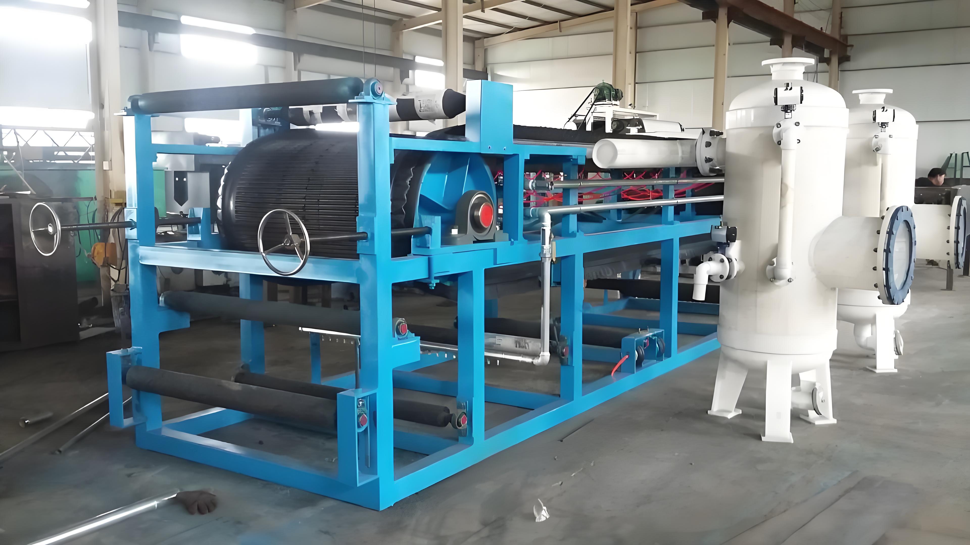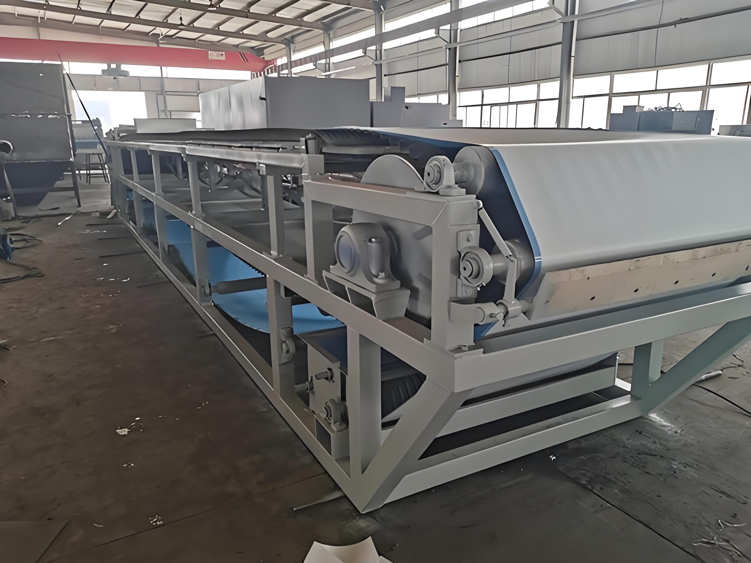 真空带式脱水机在有色金属冶炼领域有着重要应用,例如在氧化铝生产中的赤泥分离,单台设备年处理量可达50万吨。