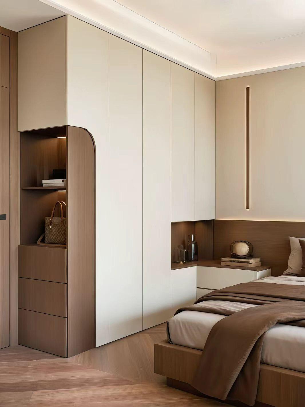 衣柜是家居生活中不可或缺的家具,泉州玖顺装饰有限公司定制的衣柜,采用高品质的兔宝宝板材,环保无异味,能够为衣物提供一个良好的存放环境。其设计合理,内部结构可以根据业主的衣物类型和数量进行个性化定制,充分利用空间,让衣物摆放更加有序。