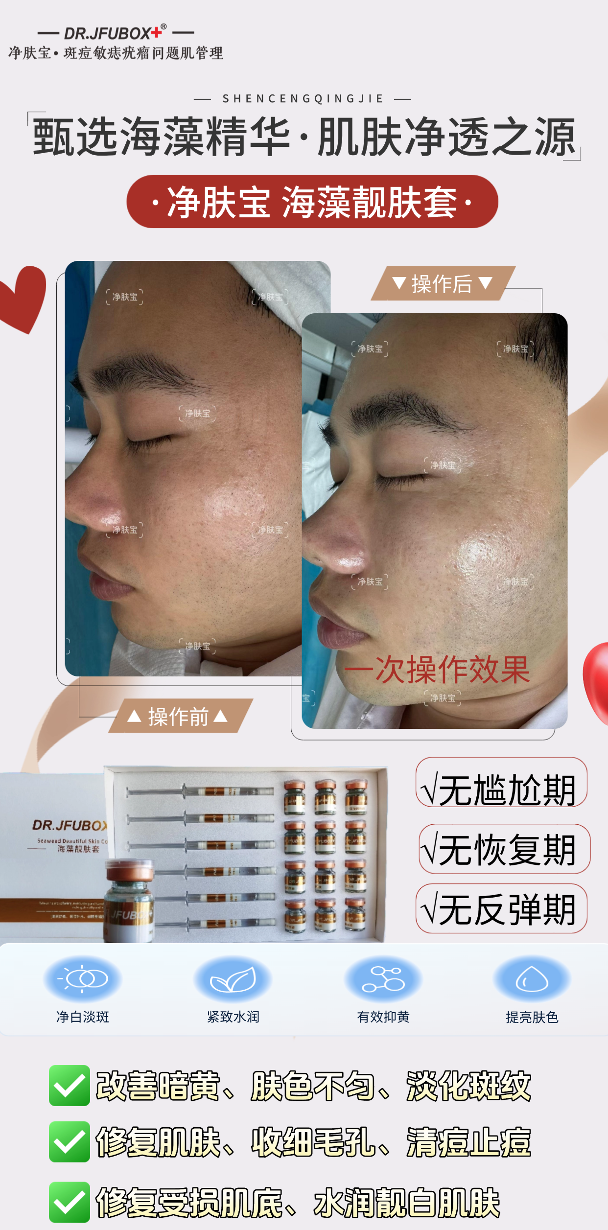 对于终端客户来说,净肤宝 - 海藻靓肤套能够有效解决多年的问题肌困扰。许多客户反馈,使用该产品后,皮肤状况得到了明显改善,满意度很高。对于合作门店而言,净肤宝 - 海藻靓肤套降低了技术门槛,帮助门店提升业绩,实现盈利增长,是值得信赖的合作品牌。