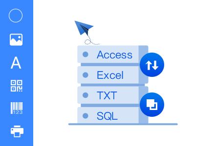 从数据库兼容性来看,软件支持对Excel、TXT文本、Access、SQL Server、Orcale、MySQL等数据库的单库、多库、单表、多表调用,同时可以对数据库中需要打印的数据进行筛选,即满足某个条件的数据或某个范围内的数据进行筛选。在海量TXT文本处理方面,软件采用独创的Map寻址技术,优化海量TXT数据文件的导入、查询方式,可以瞬间导入1000万行文本数据。