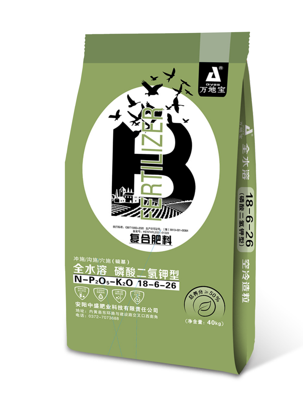在肥料行业中,安阳中盛肥业科技有限责任公司是一家颇具影响力的企业。它是以生产高塔复合肥、硝基复合肥、磷酸二氢钾复合肥、黄腐酸钾复合肥、大量元素水溶肥等功能性肥料配方研发、生产、销售为一体的生产型企业。现有高塔复合肥生产线、大量元素水溶肥多条生产线,年产能近百万吨。以“万地宝”为主导品牌的系列复合肥产品已畅销国内三十余省、市、自治区,并获得消费者认可。