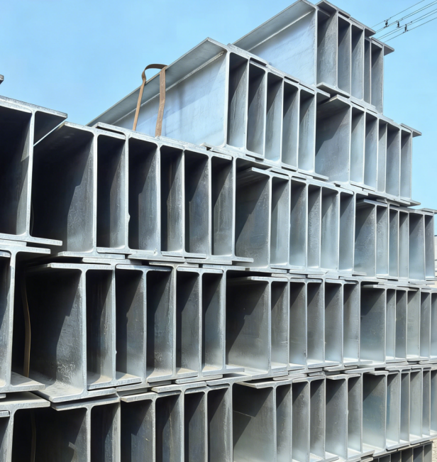 镀锌工字钢钢结构在工字钢的基础上进行了镀锌处理,具有更强的耐腐蚀性。适用于一些潮湿、易腐蚀的环境,如港口、海洋工程等,能大大延长钢结构的使用寿命。