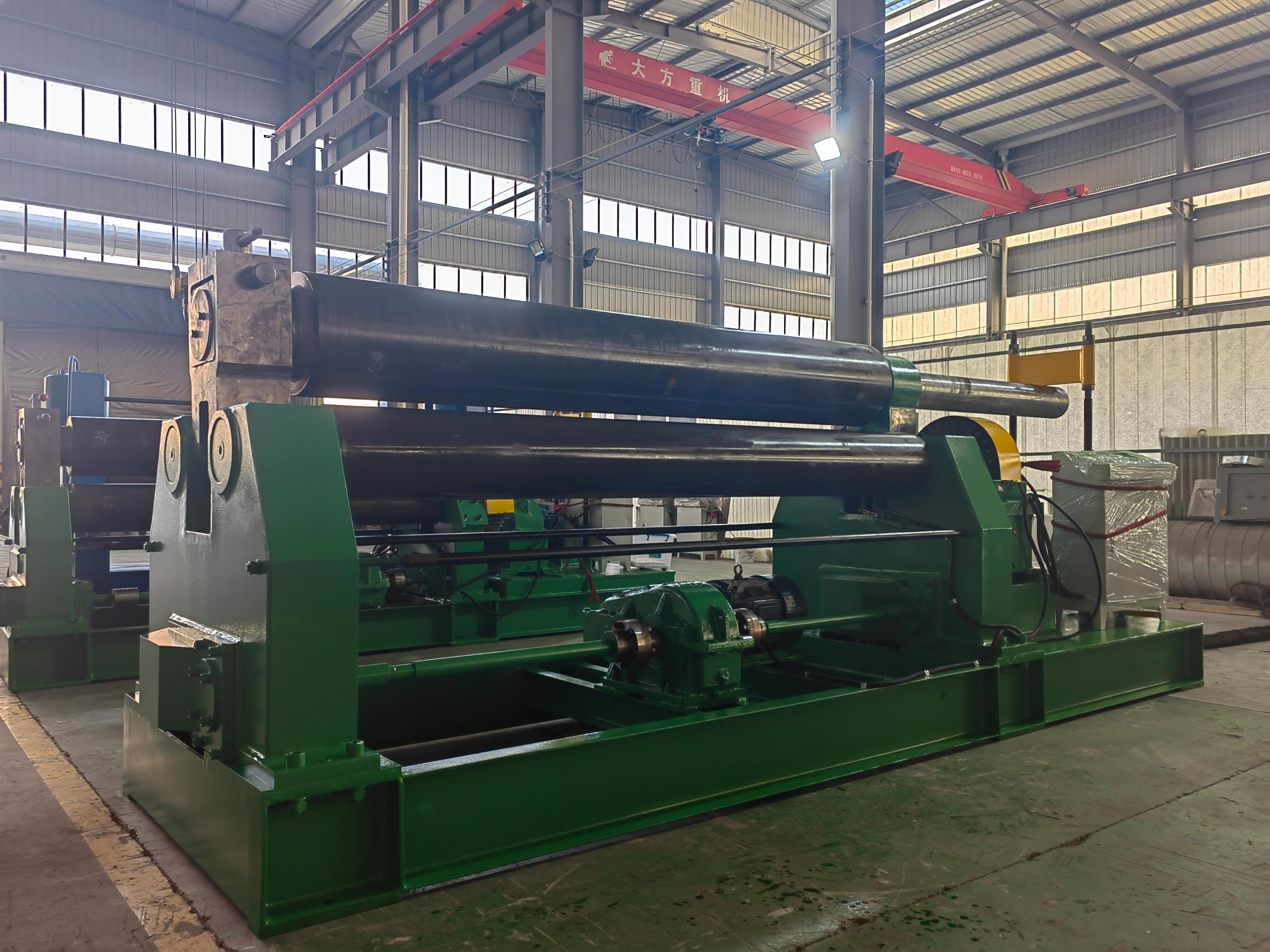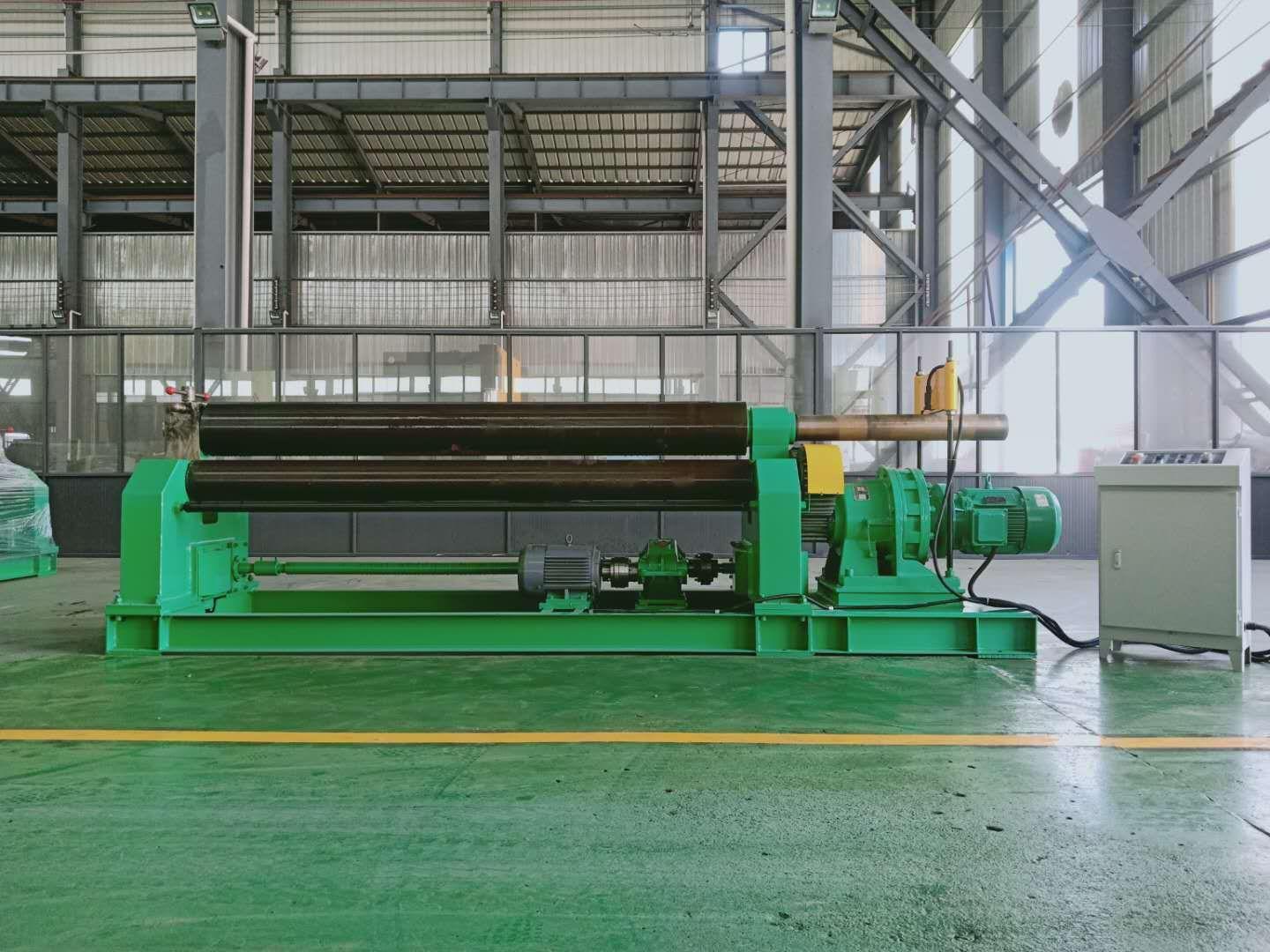 液压三辊对称式卷板机:采用液压驱动,具有较大的卷制力。其对称式的设计使得卷制过程更加稳定,能够卷制出高质量的圆形或弧形板材。在船舶制造、压力容器制造等行业,液压三辊对称式卷板机是不可或缺的设备。