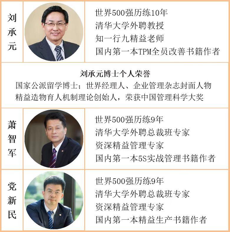 公司还有一支知一行九的专家队伍,百余位历经多年精益管理实践打磨的精干专职、专业顾问,全部来自丰田、三星、理光等世界500强或优秀跨国企业,具有丰富的实战经验和高超的规划、落地能力。这些专家经验丰富,在500强或跨国企业服务5年以上,身经百战;理论扎实,精益管理理论扎实,智慧充分,并熟练掌握经营、管理和改善工具;年富力强,有激情和使命感;知行合一,能解决企业实际问题,用结果说话。