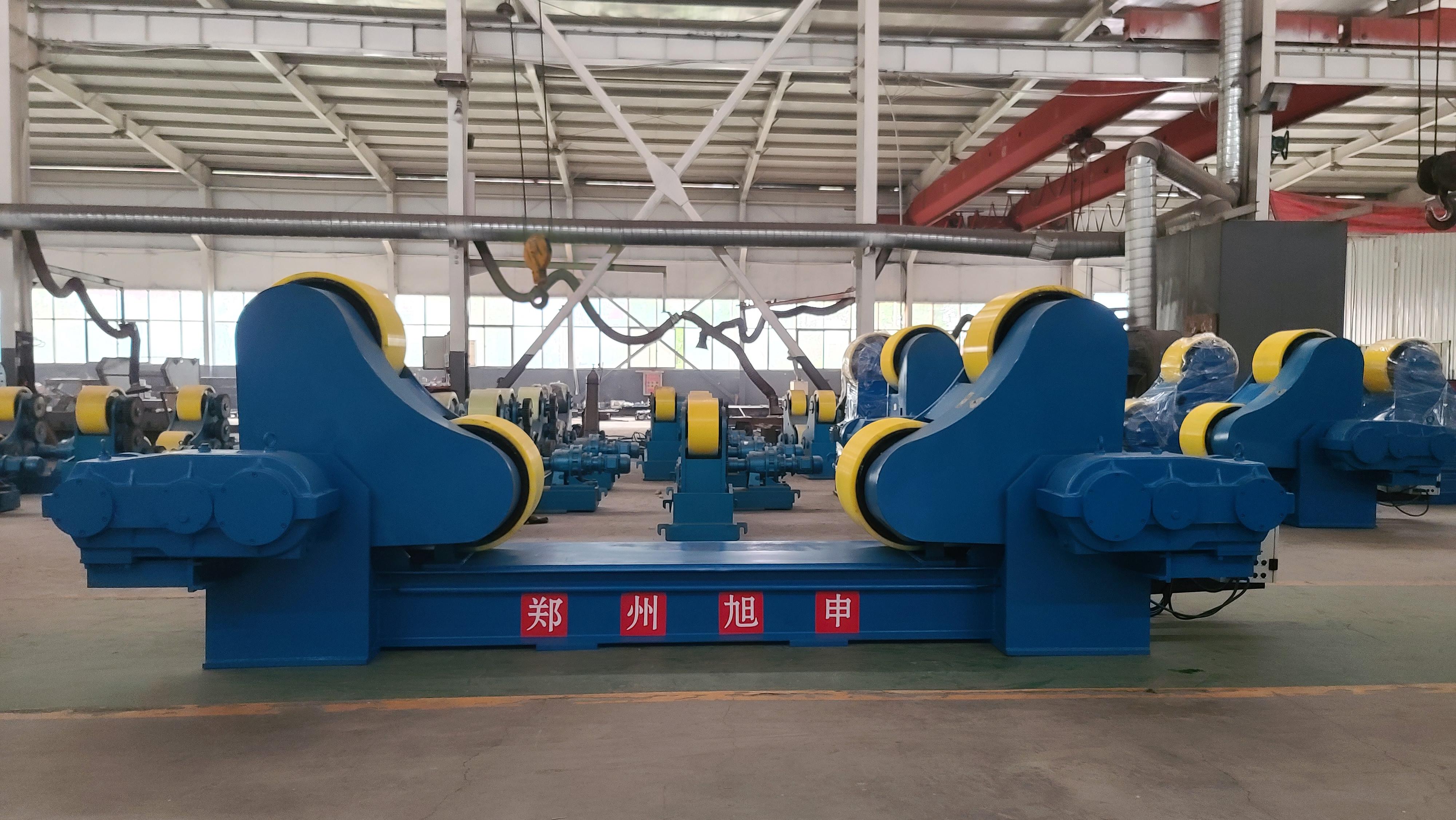 郑州旭申智能装备有限公司的焊接滚轮架在技术上也有创新。行业首创 “四滚轮自调结构”(主动轮全轮驱动),可自动适配工件直径,相比手动调距的滚轮架,装夹时间缩短 80%。所有 ZT 系列均采用主动架 “全轮驱动”(替代传统半驱动),动力更均匀,可带动超重型工件(如 100T 反应器)平稳转动,转动稳定性提升 40%。机架采用有限元分析优化,保证了设备的承载能力。
