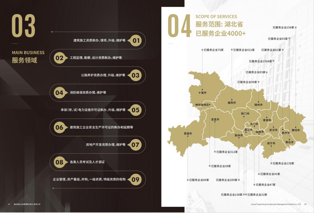 接下来,我们详细介绍一下建业通企业运营管理湖北集团有限公司的主营产品。公司提供湖北靠谱资质代办服务,无论是黄石靠谱公路资质代办,还是十堰公路资质代办,亦或是武汉靠谱资质代办、宜昌公路施工资质代办等,都能为客户提供专业、高效的解决方案。