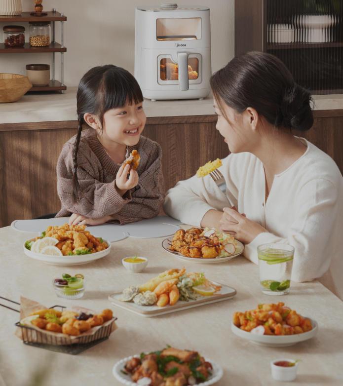 美的小家电主营产品丰富多样,其中美的空气炸锅备受关注。