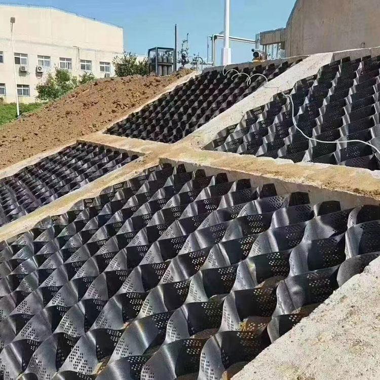 水利工程方面,土工格室可以用于河道护坡、堤坝加固等。它能够抵抗水流的冲刷,保护河岸和堤坝的安全。其高强度的特性可以有效地防止水流对土壤的侵蚀,延长水利工程的使用寿命。
