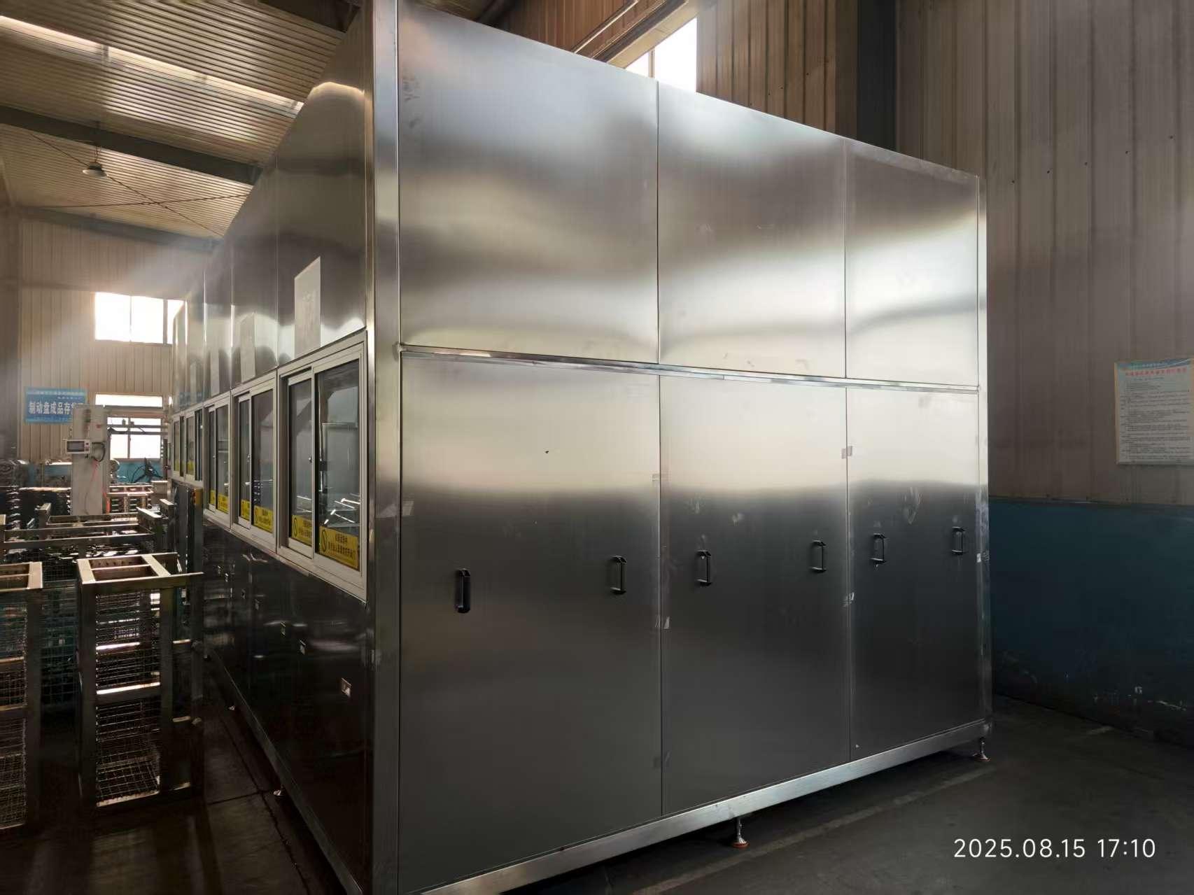在设备性能特点上,清洗效果强,洁净度高。超声波设备震力均匀、穿透力强,可有效清除工件盲孔、深孔、夹缝中的油污、铁屑、切削液、抛光蜡。高压喷淋机型压力稳定、覆盖面广,对大型壳体、缸体、铸件等除油除屑效果显著。支持清洗 + 漂洗 + 烘干一体化工艺,工件出炉即可达到包装或装配标准。运行稳定,效率高,全自动控制模式,一键启动,连续运行稳定,适合批量流水线生产。温控、液位、过滤、循环系统联动运行,减少人工干预,提升产能。针对重型工件、复杂结构件设计专用清洗方案,不损伤工件表面精度。节能环保,运行成本低,水循环过滤系统设计,节约用水、减少清洗剂消耗。超声波功率自动匹配,能耗合理;喷淋系统压力可调,节能降噪。设备密封性好,雾气、废液外泄少,符合车间环保要求。自动化程度高,适用性强,支持通过式、槽式、悬挂链式、旋转式等多种结构形式。可定制 PLC 触摸屏控制、自动升降、自动翻转、变频调速等功能。对汽车零部件、缸体缸盖、轴承、齿轮、压铸件、五金件等适应性极强。