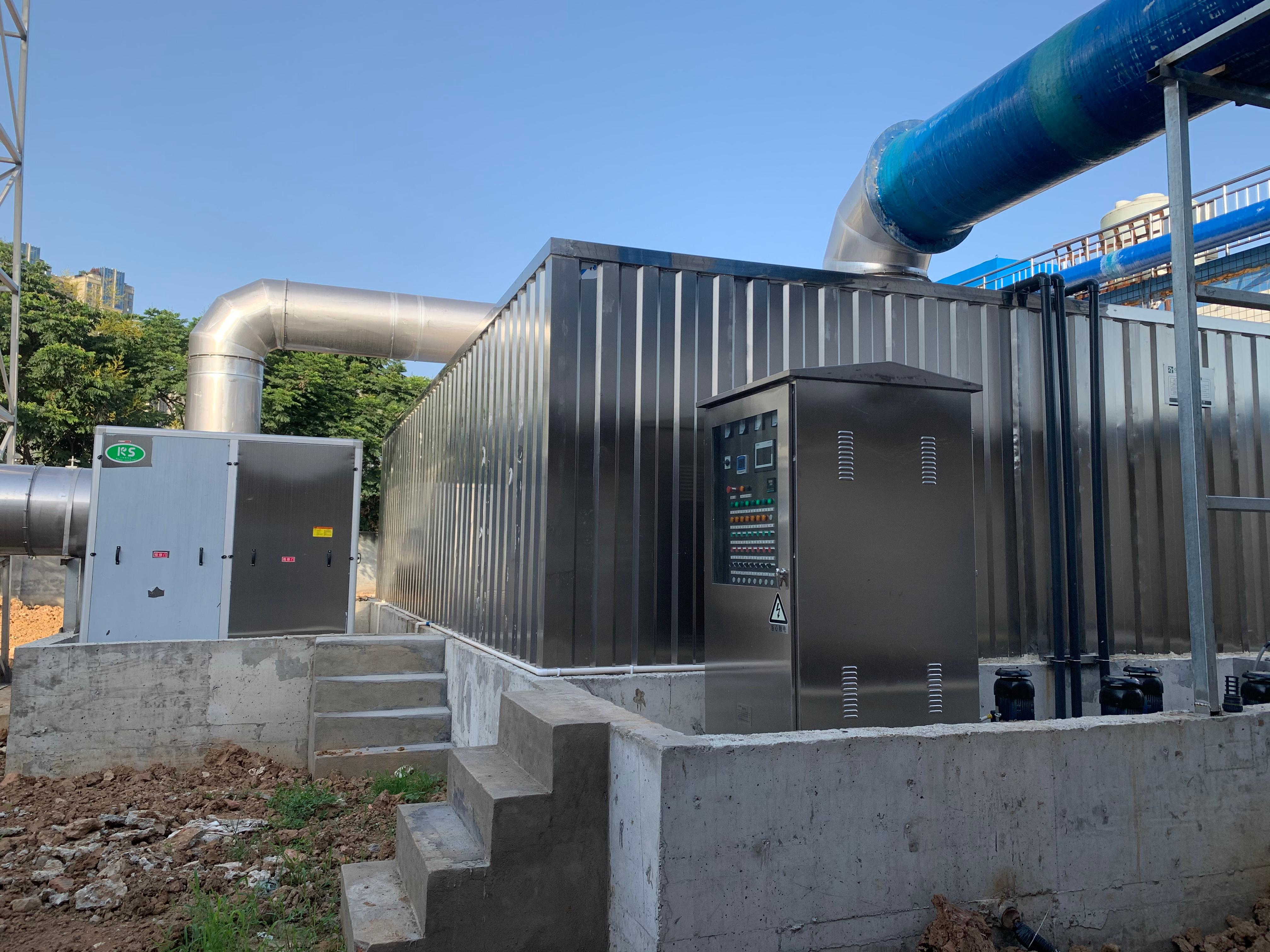 生物除臭箱采用模块化设计,玻璃钢材质耐腐蚀抗老化,内置高效生物填料与喷淋系统,适用于污水厂、泵站、垃圾中转站等废气治理。其独特的设计使得废气能够在箱内得到充分处理,有效去除异味,改善环境质量。