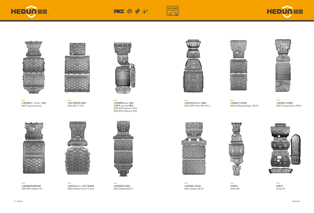 售后与改装市场也是企业重要业务板块。赫盾产品覆盖国内外数千款主流车型,包括比亚迪、长城、小鹏、理想、问界、特斯拉、丰田、本田、宝马、奔驰、奥迪等品牌,同步跟进新车型上市节奏,快速推出适配护板,满足不同用户需求。针对家用车主,产品提供基础防护,延长车辆使用寿命;针对越野爱好者,产品采用高强度材质与加固设计,具备超强抗冲击、防拖底能力,适应复杂越野路况;针对新能源车主,产品精准覆盖电池、电机、电控等核心部件,提升用车安全性,消除底盘剐蹭隐患。