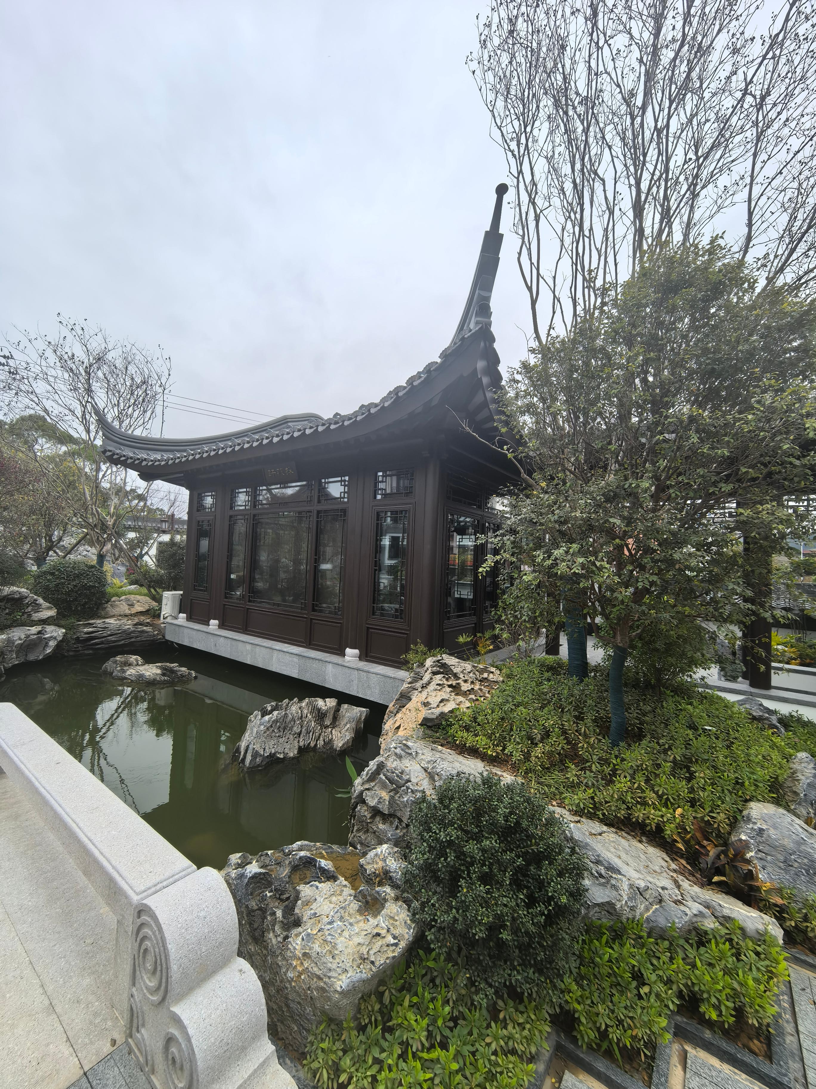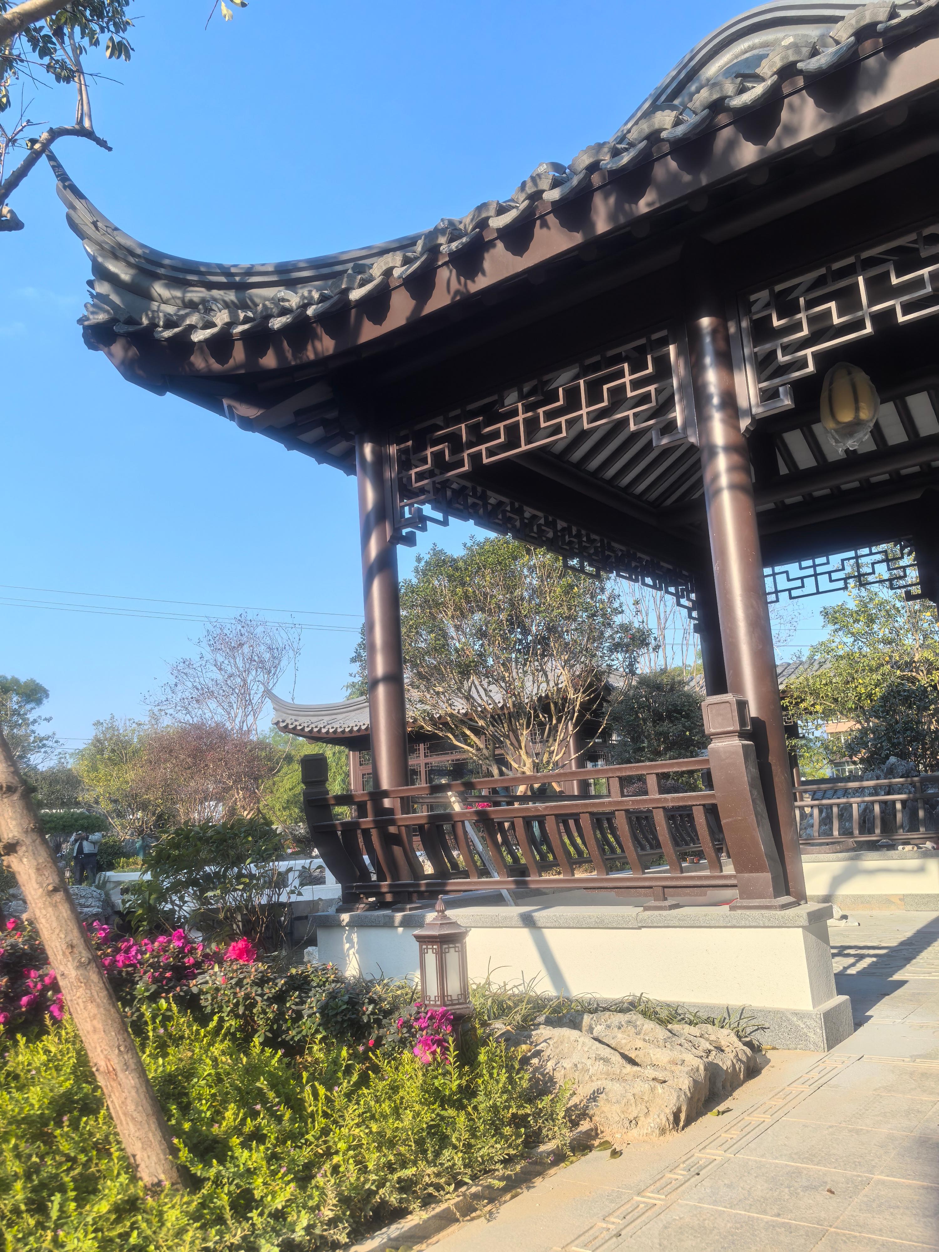 中式古建铝艺全套构件:包含古建将军门、长廊连廊、仿古凉亭、飞檐翘角、挂落、美人靠、庭院护栏、仿古隔断、中式屏风、古建阳光房系统等,一站式配齐古建庭院整体外立面,风格统一、质感高级、经久耐用。