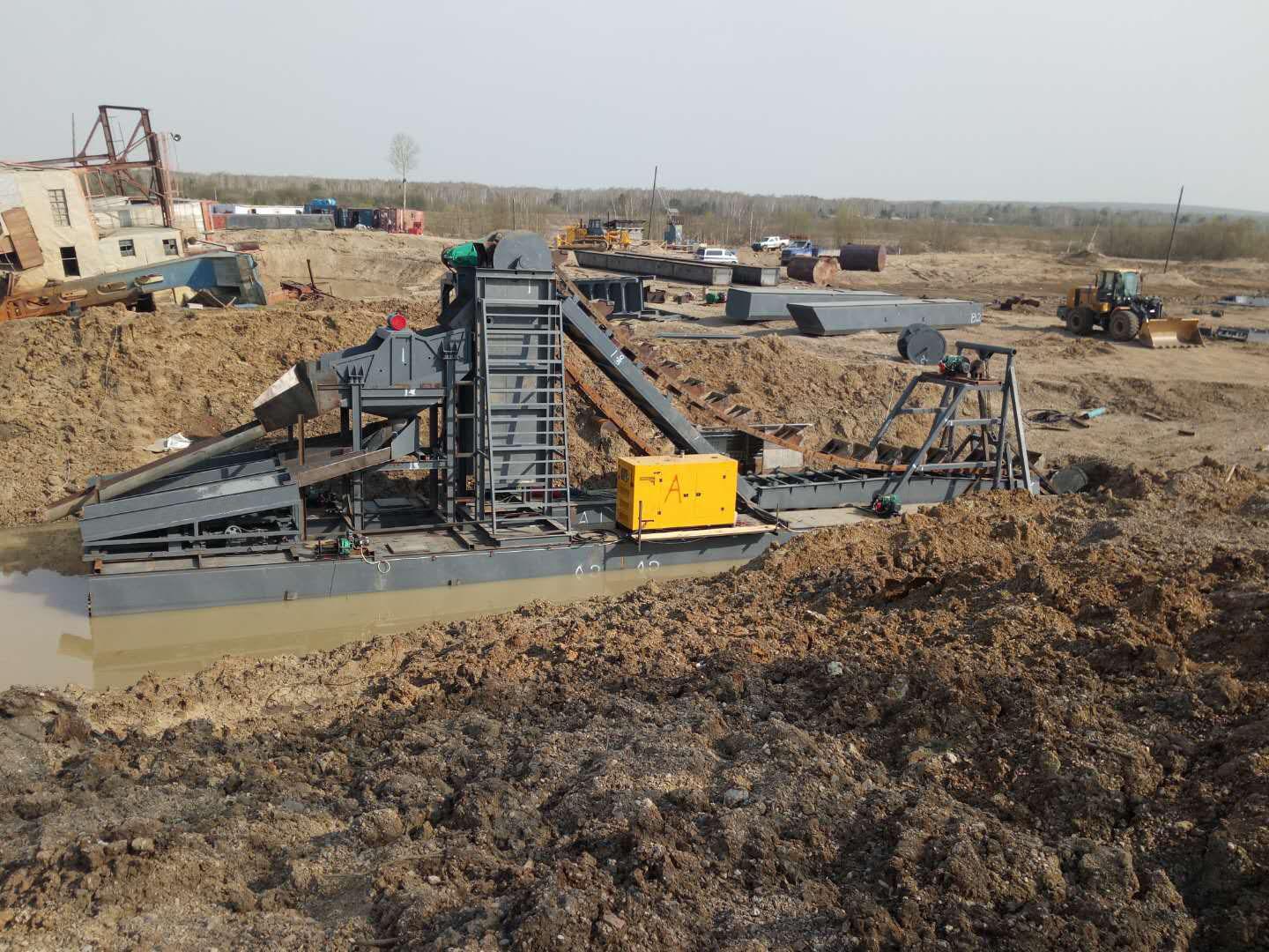 公司主营的沙金船是一种专门用于在河流、湖泊等水域中开采沙金的设备。沙金船的特点在于其能够在水面上稳定作业,通过特殊的挖掘和筛选装置,将河底的沙砾和矿石挖掘上来,并进行初步的筛选和分离,从而提取出沙金。沙金船的设计充分考虑了水域环境的特殊性,具有良好的稳定性和适应性,能够在不同的水流和地质条件下高效工作。