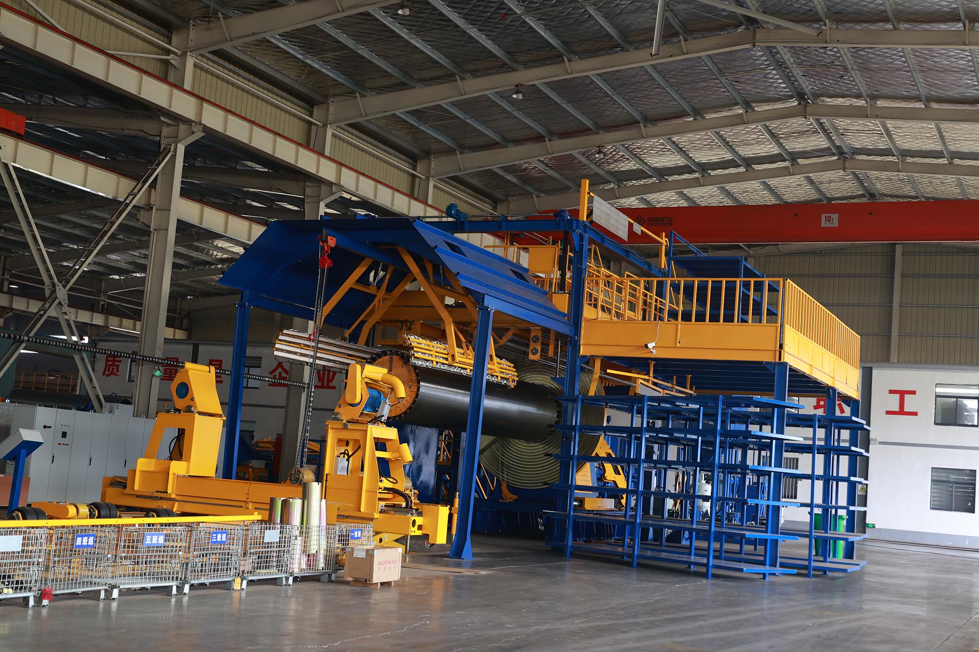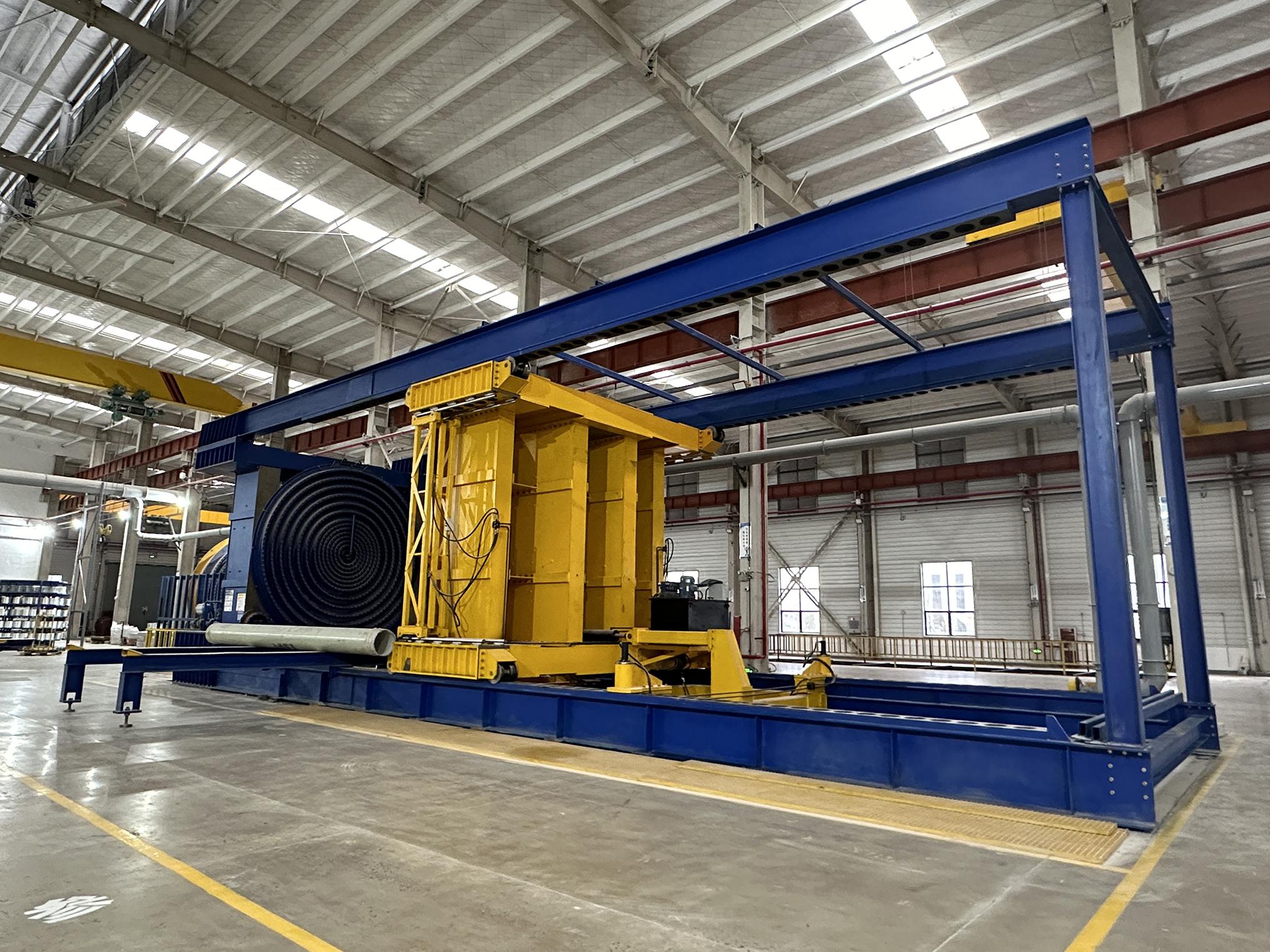 CFW连续缠绕生产线制造商也是连云港唯德的身份之一。CFW连续缠绕生产线是其核心产品之一,该生产线集成了多种先进技术,能够实现连续、高效的生产。CFW连续管道缠绕机作为生产线的核心设备,专门负责连续缠绕管道的制造。它集成了主轴传动装置、稳固的总体框架、精准的钢带推进装置等众多精密组件,这些组件紧密协作,从而确保管道生产的高效率和高质量。