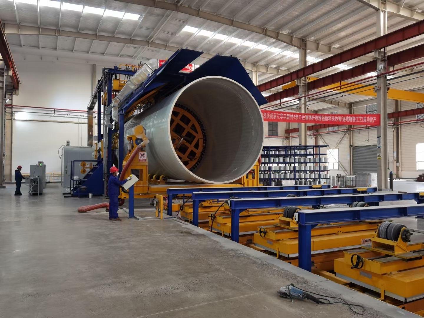 从技术创新与设备优势方面来看,连云港唯德公司的CFW系列连续玻璃钢管道缠绕机设备十分先进。该设备集成了主轴传动装置、钢带推进装置、多种淋胶装置、加热系统、各类纱架、压辊以及PLC控制系统等众多精密机构,能够实现钢带缠绕、材料添加、加热固化至管道切割修整的全流程自动化生产,充分展现了公司在技术上的水平。