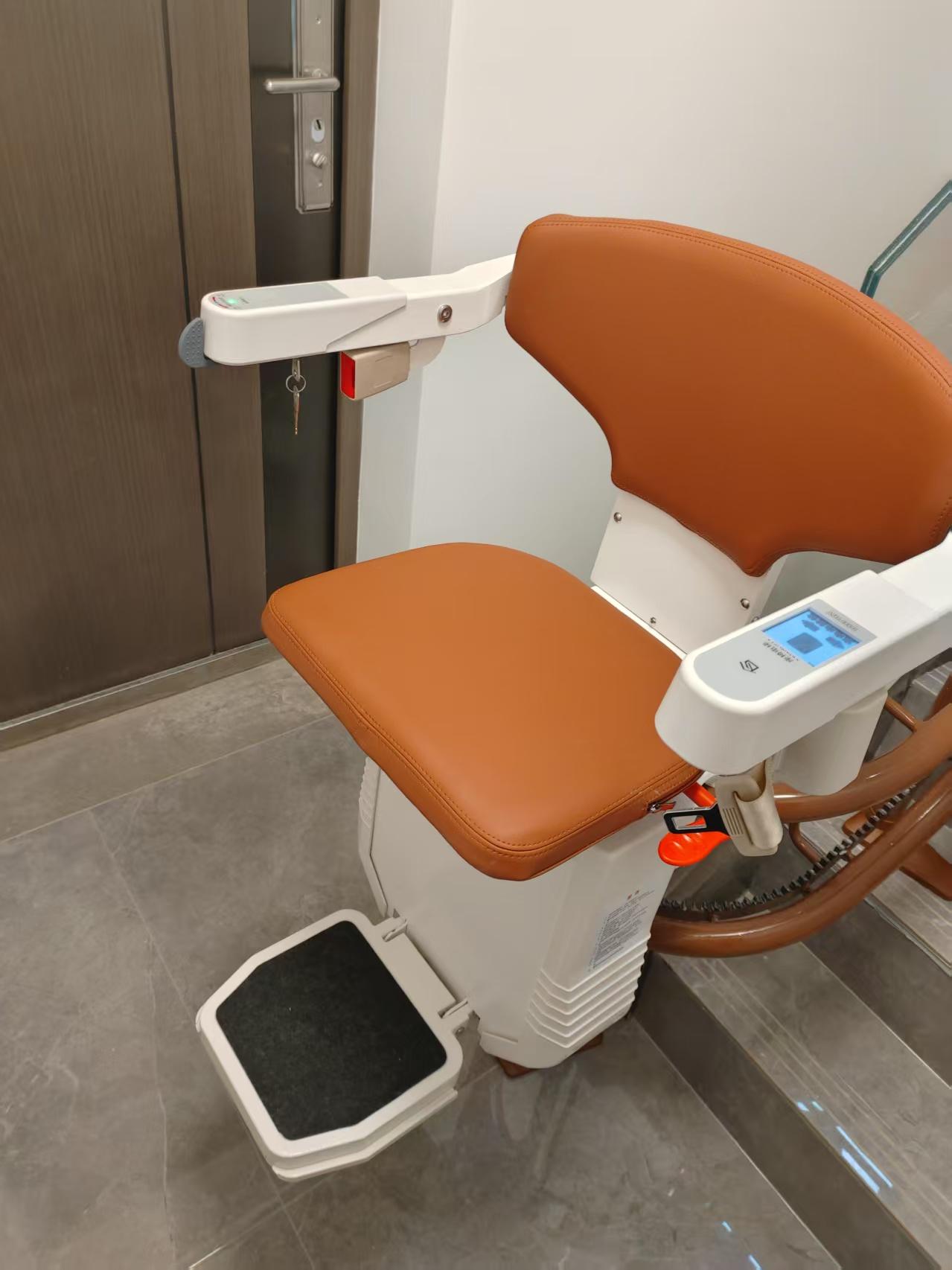 专为老人设计楼梯座椅电梯爬楼机优质厂家生产的产品,具有操作简单、运行稳定的特点。老人只需轻轻按下按钮,就可以轻松上下楼。而且,该产品还配备了语音提示功能,方便老人使用。