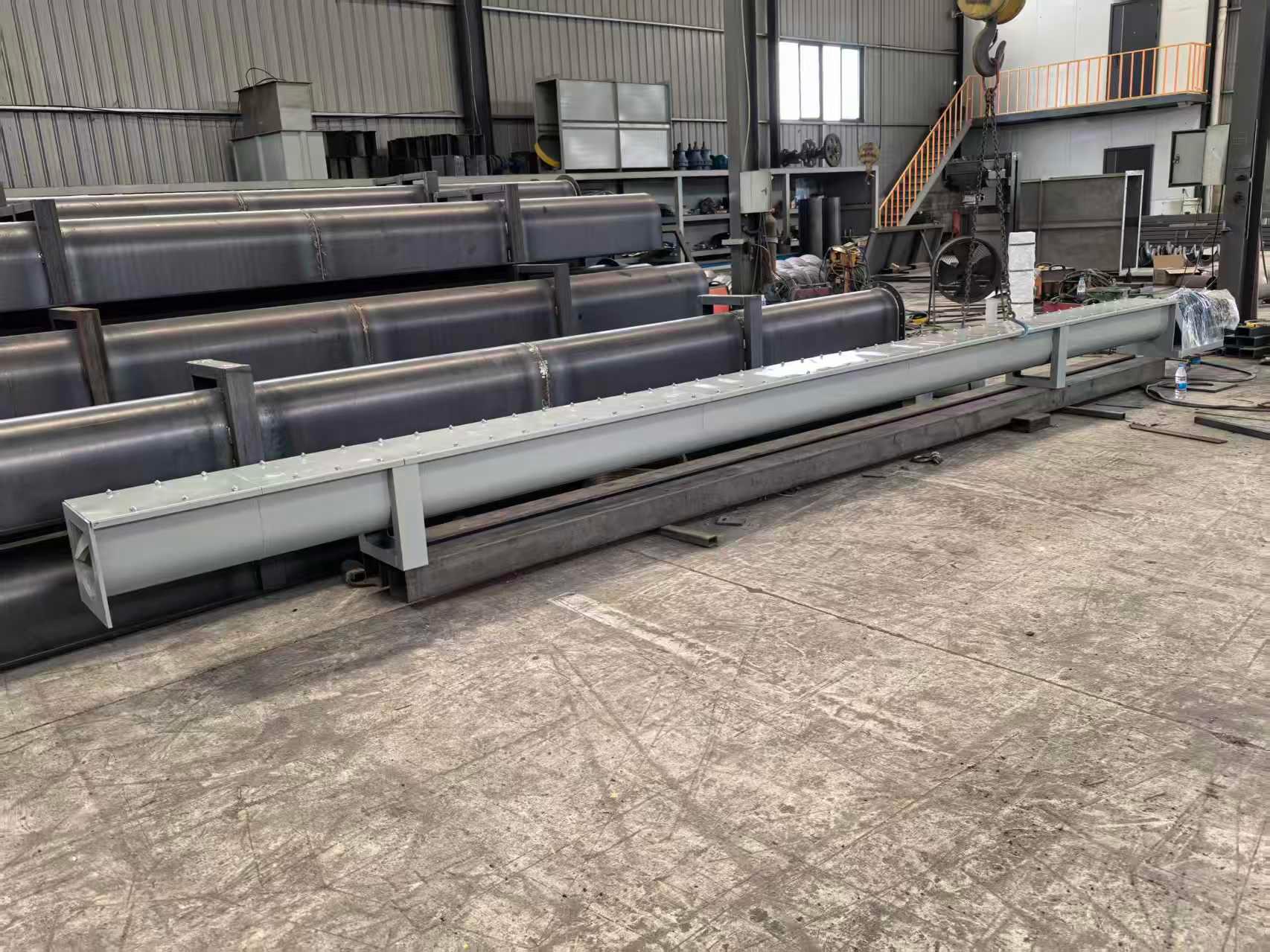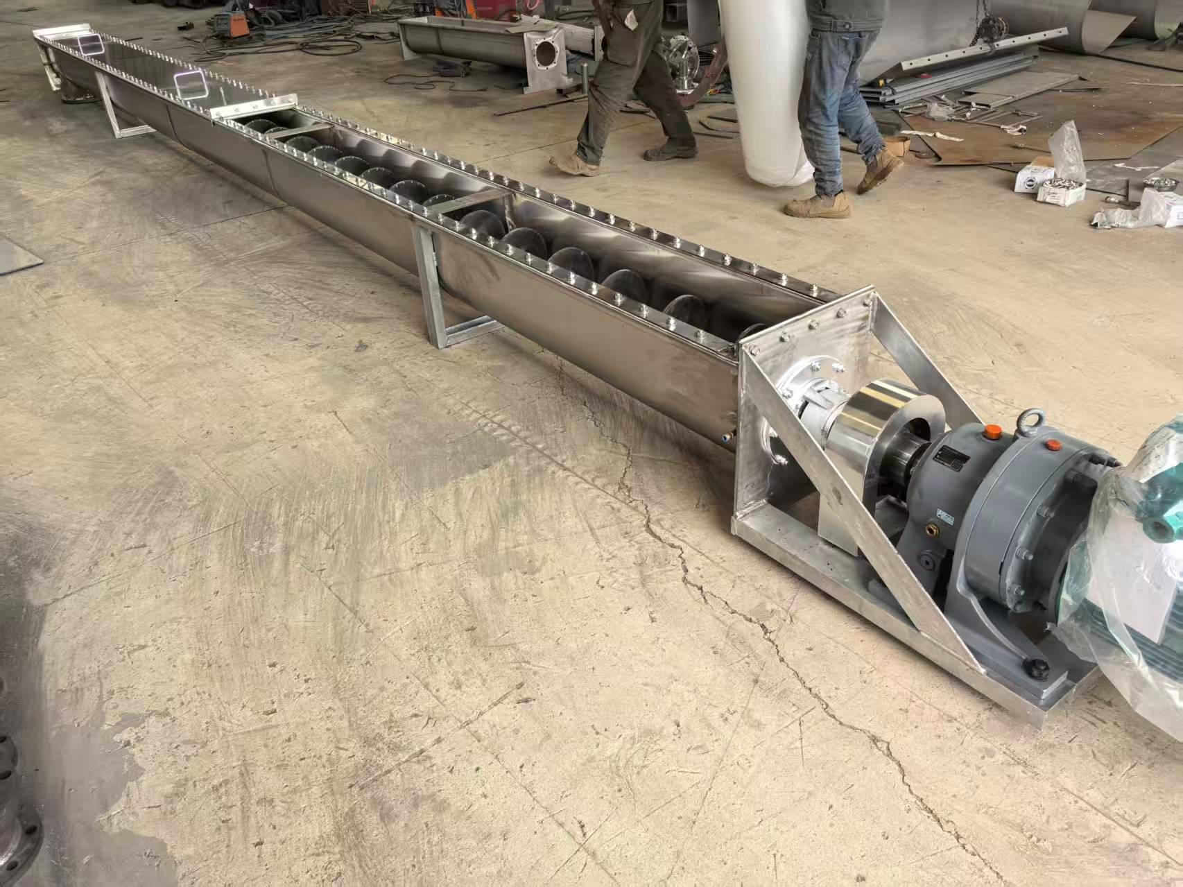长距离螺旋输送机,适用于需要长距离输送物料的场景。它能够在较大的距离范围内稳定、高效地输送各种物料,减少了物料输送过程中的中转环节,提高了生产效率。其特点是输送距离长、输送能力强,能够适应不同类型的物料,如粉状、粒状等物料的输送。