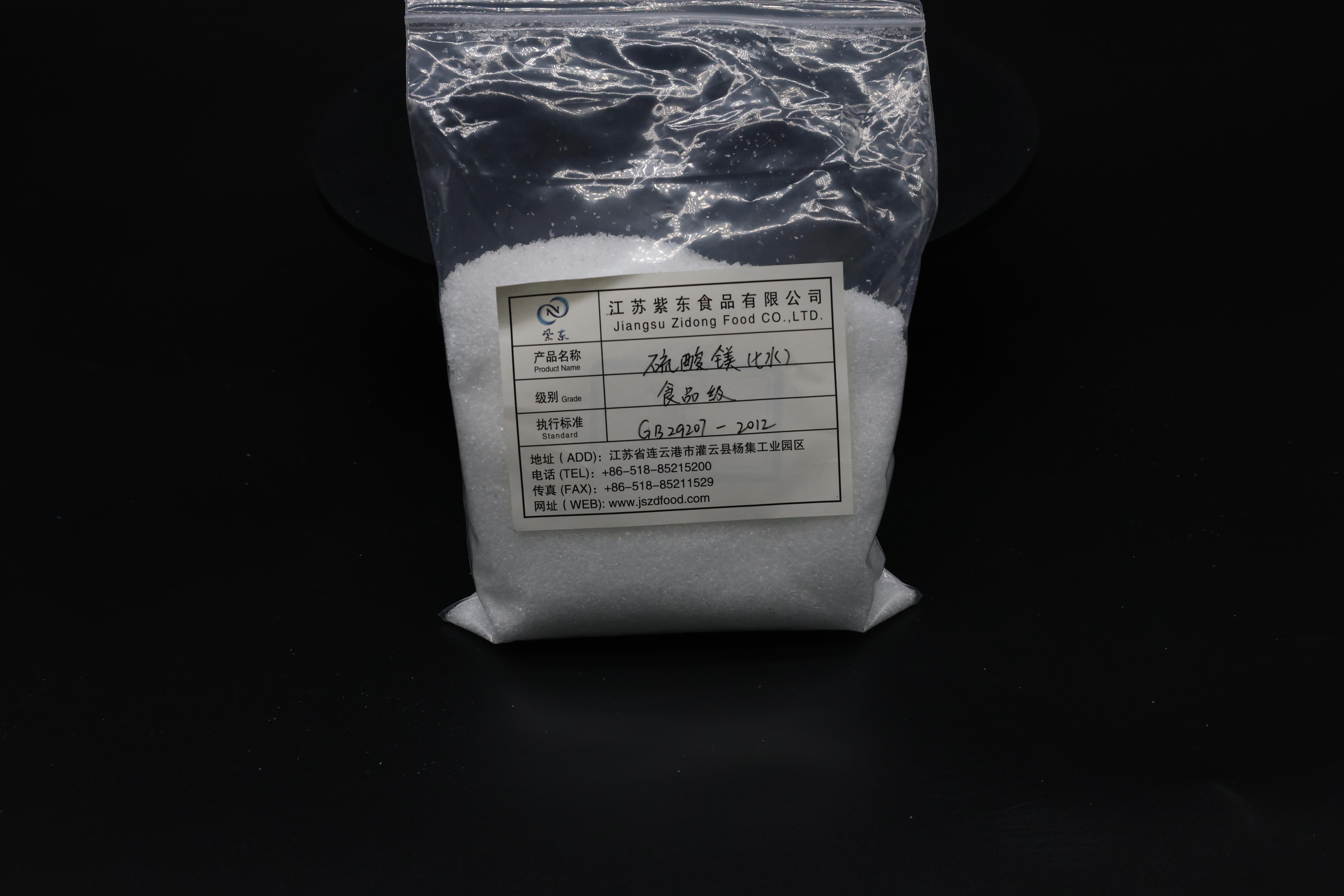 硫酸镁在食品工业中可作为营养强化剂、发酵助剂等。它能够为食品提供必要的镁元素,有助于维持人体正常的生理功能。江苏紫东食品有限公司生产的硫酸镁产品,纯度较高,杂质含量低,能够满足食品生产企业对产品质量的严格要求。