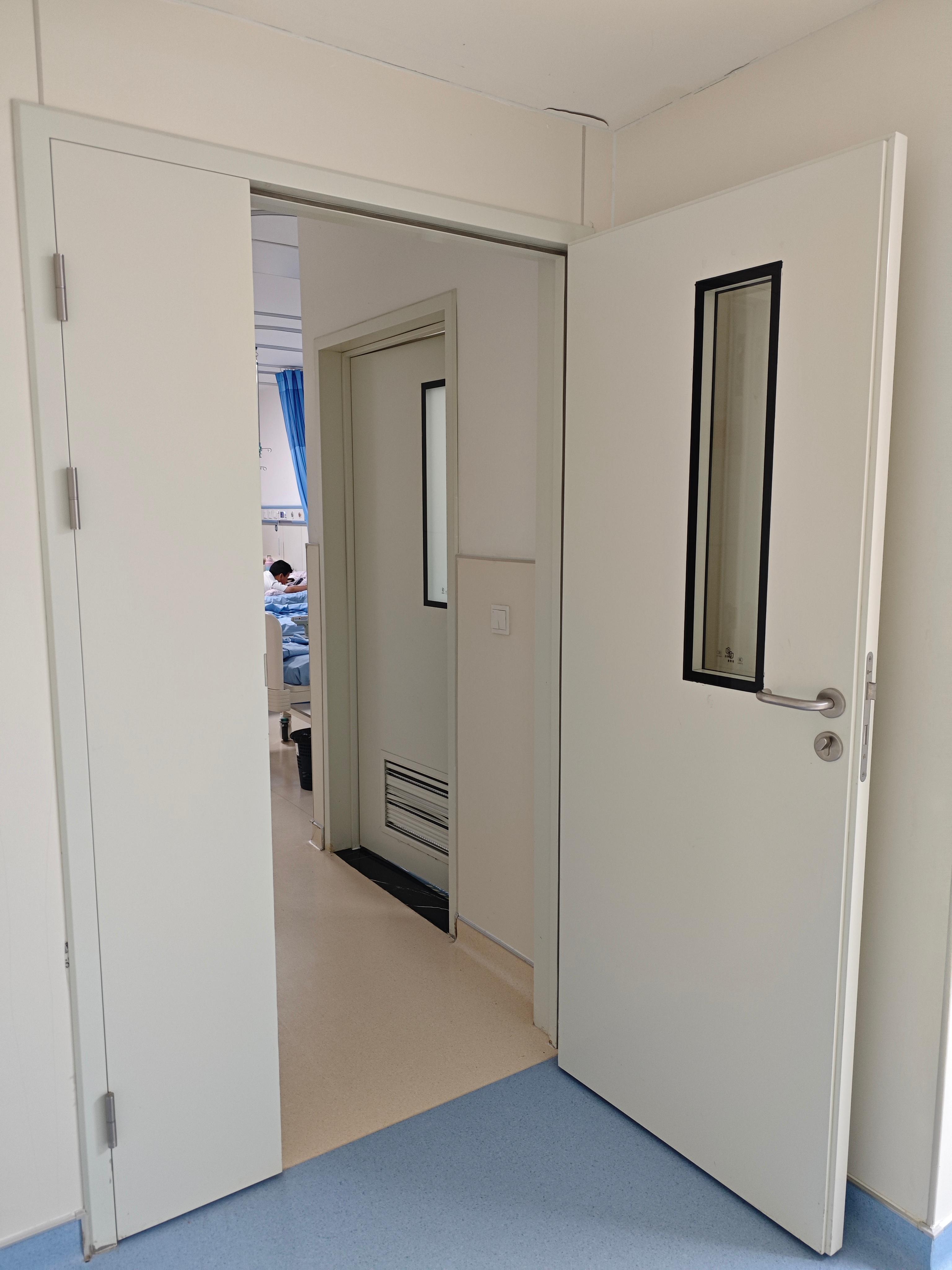 病房净化门主要应用于医院病房,其特点显著。它采用了优质的材料制作,整体成型工艺使得焊缝平整,保证了良好的密封性,能有效防止外界灰尘、细菌等进入病房,为患者提供一个相对洁净的治疗环境。而且医用气密门运行平稳、噪音低,不会影响病房内患者的休息。密封胶条耐用,防撞、耐擦洗性能良好,即使在日常使用中受到一定的碰撞和摩擦,也能保持较好的性能。五金配件可靠,开关顺畅,还可配套脚感应、观察窗、互锁等功能,稳定性强,方便医护人员的操作。