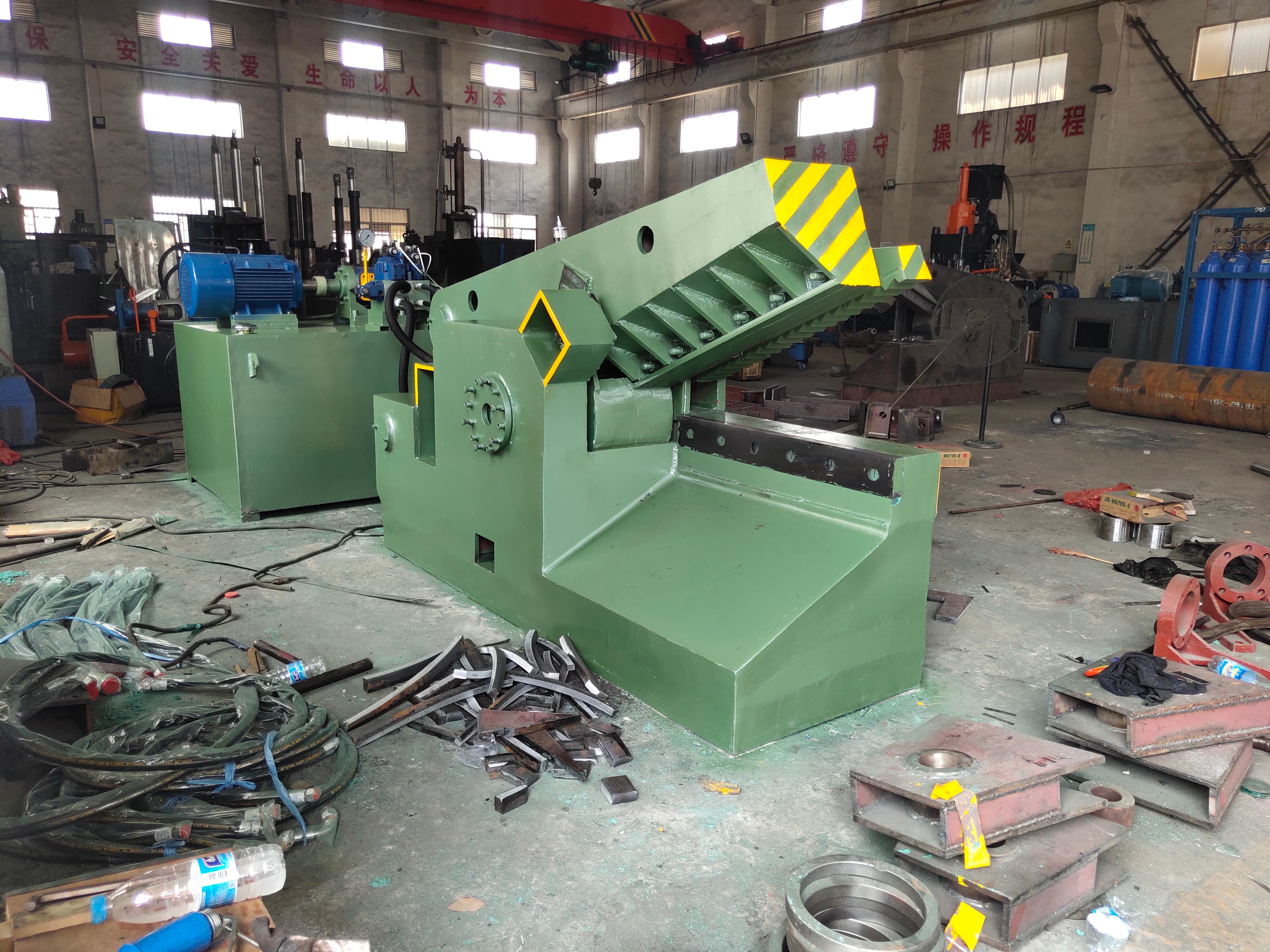 鳄鱼式剪切机是该公司的一款特色产品。它具有独特的设计,其工作原理就像鳄鱼的嘴巴一样,能够快速、准确地剪切各种金属材料。这种剪切机适用于金属回收、加工等行业。在金属回收过程中,鳄鱼式剪切机可以将废旧金属快速剪切,便于后续的处理和运输。它的特点是剪切力大,能够应对各种硬度的金属材料。而且操作相对简单,工人经过简单培训即可熟练操作,大大提高了工作效率。