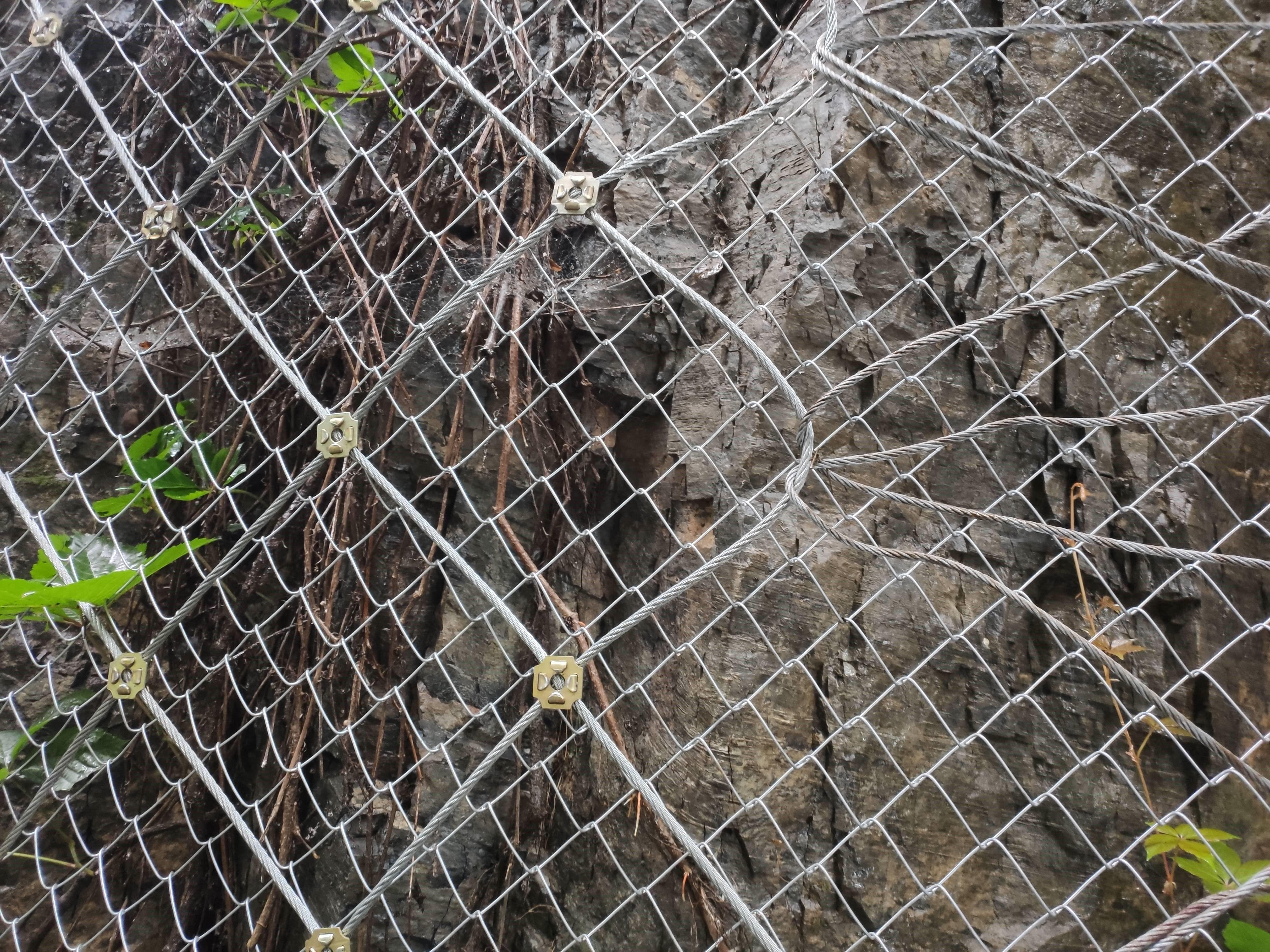 钢丝绳网:具有高强度、高韧性的特点。在边坡防护中,能够承受较大的冲击力,有效地阻止石块等重物的滑落,为周边环境和人员提供可靠的安全保障。其独特的编织结构,使得钢丝绳网在受力时能够均匀分散力量,进一步增强了防护效果。在一些山区的铁路、公路旁,钢丝绳网常常被安装在边坡上,防止因山体滑坡等自然灾害对交通线路造成破坏。