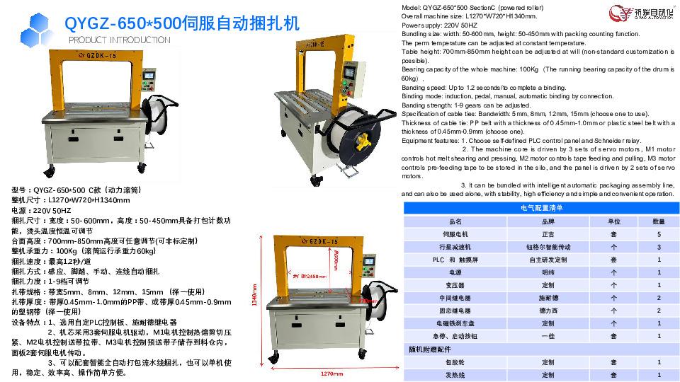 公司创始人深耕打包机行业多年,带领着一支经验丰富、创新能力突出的技术团队,构建了从核心部件研发到整机生产、定制化方案设计的全产业链体系。其核心产品线丰富多样,覆盖了伺服自动捆扎机(QYGZ系列)、伺服手动捆扎机(QYGC系列)、侧打/低台专用机(QYGL/QYGH系列)及配套流水线,形成了多场景覆盖的产品矩阵。