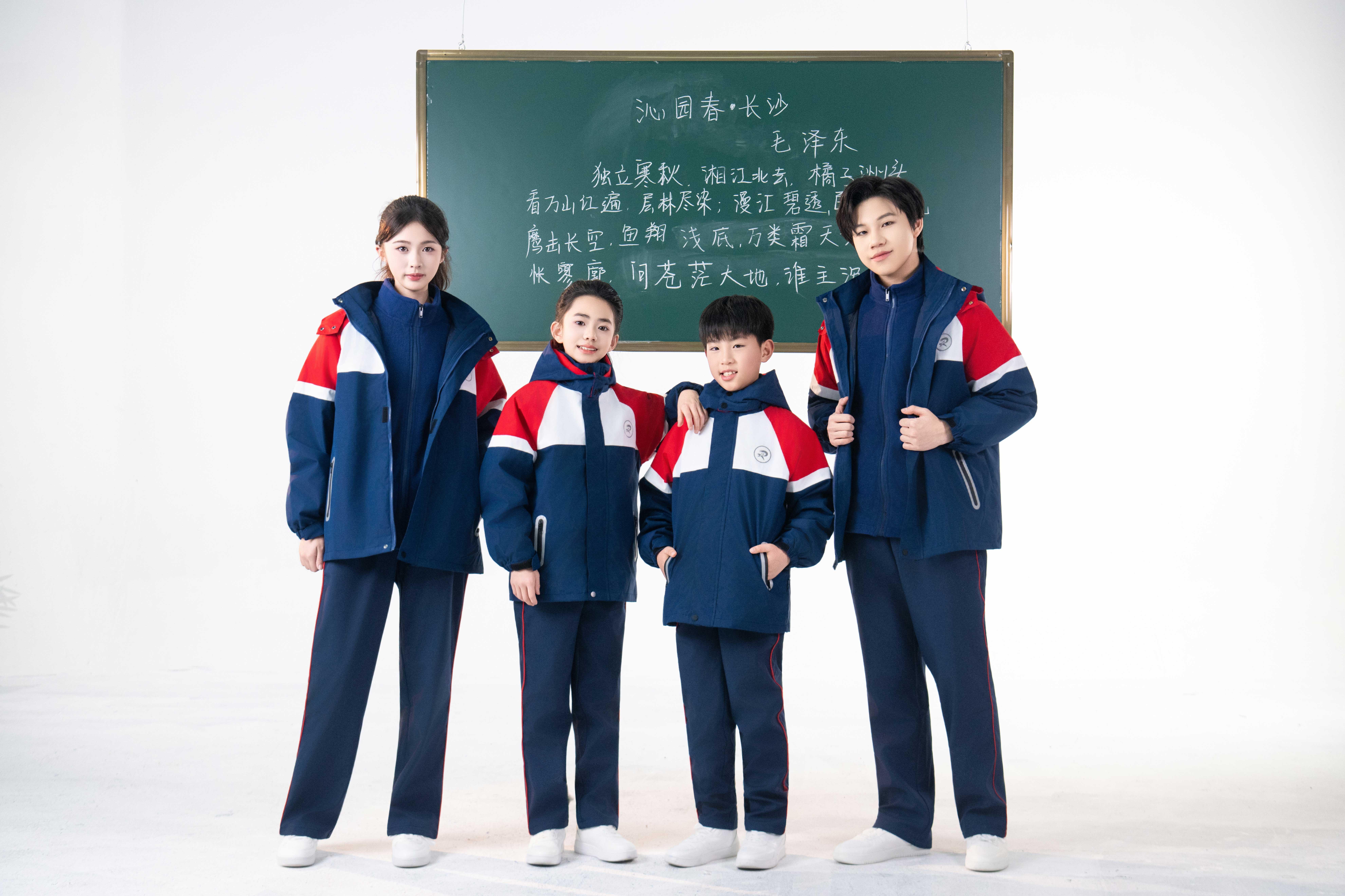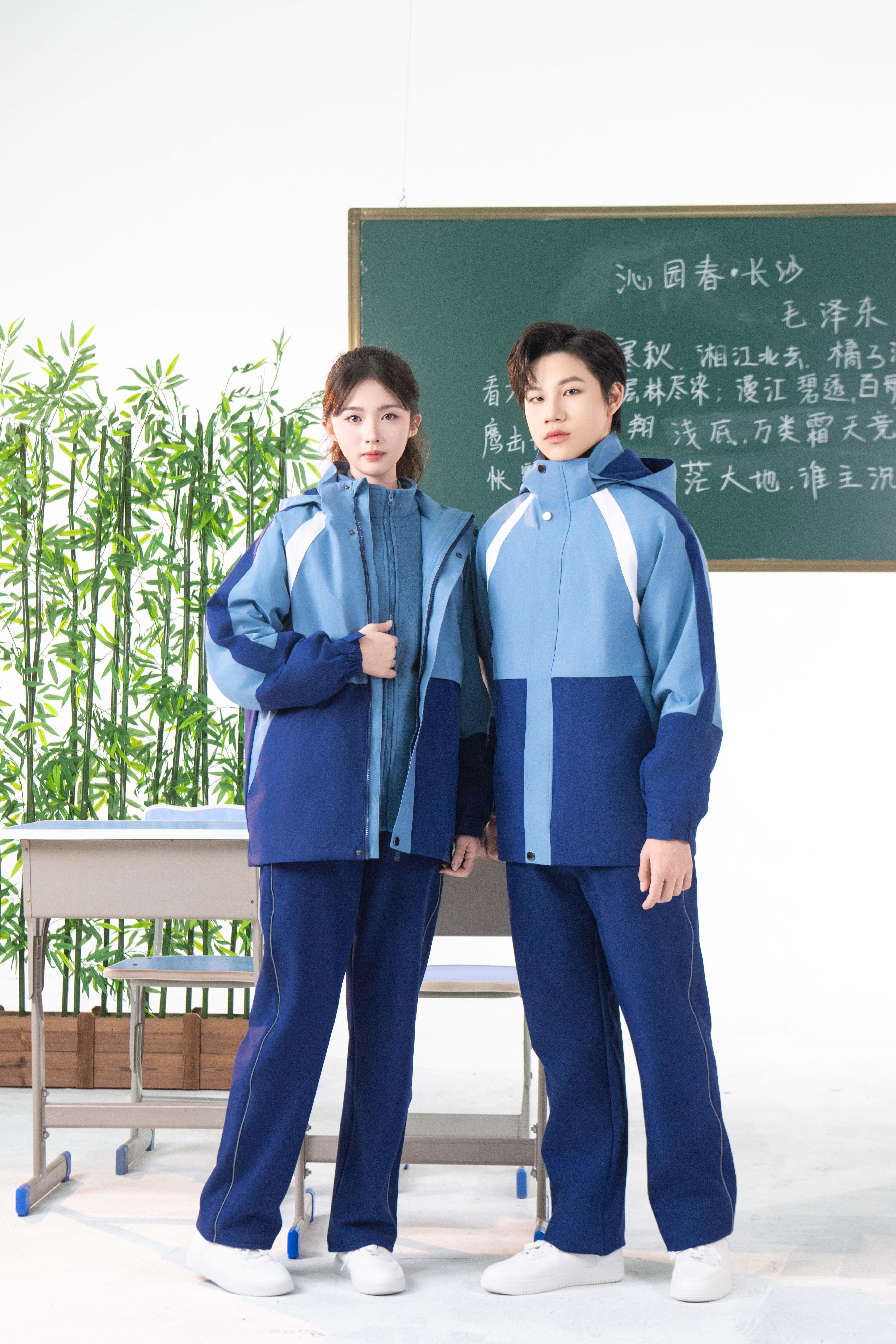 校服外套的款式多样,能够满足不同学校和学生的需求。无论是简约风格还是时尚风格,都能展现出学生的青春活力。