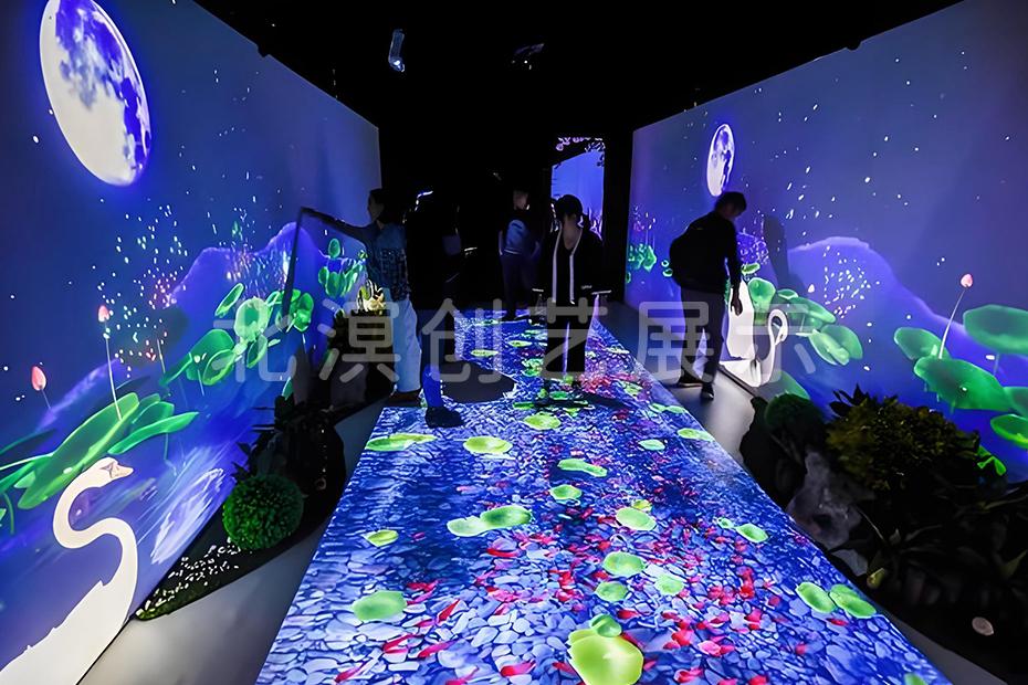 地面互动投影是北溟创艺展示的主营产品之一。它可以应用于商场、展厅等场所,通过互动投影技术,吸引观众的注意力,增加观众与展示内容的互动性。其特点是能够根据不同的场景和需求进行定制,投影效果清晰、流畅,互动体验感强。