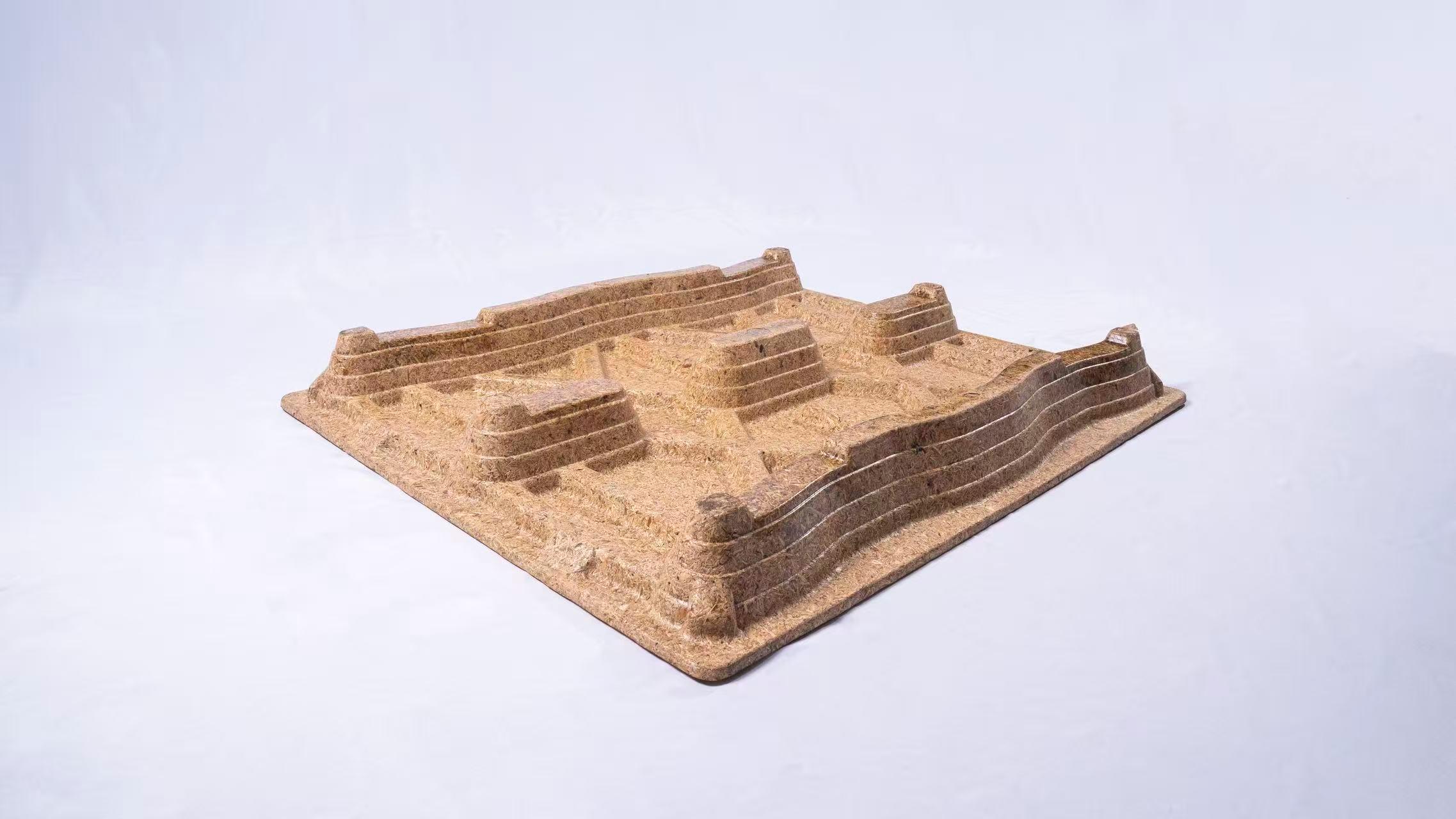 植物秸秆托盘是一种新型的环保托盘,它利用植物秸秆等可再生资源制成。植物秸秆托盘具有环保、可降解等优点,符合现代社会对环保的要求。同时,植物秸秆托盘的成本相对较低,具有较好的市场前景。