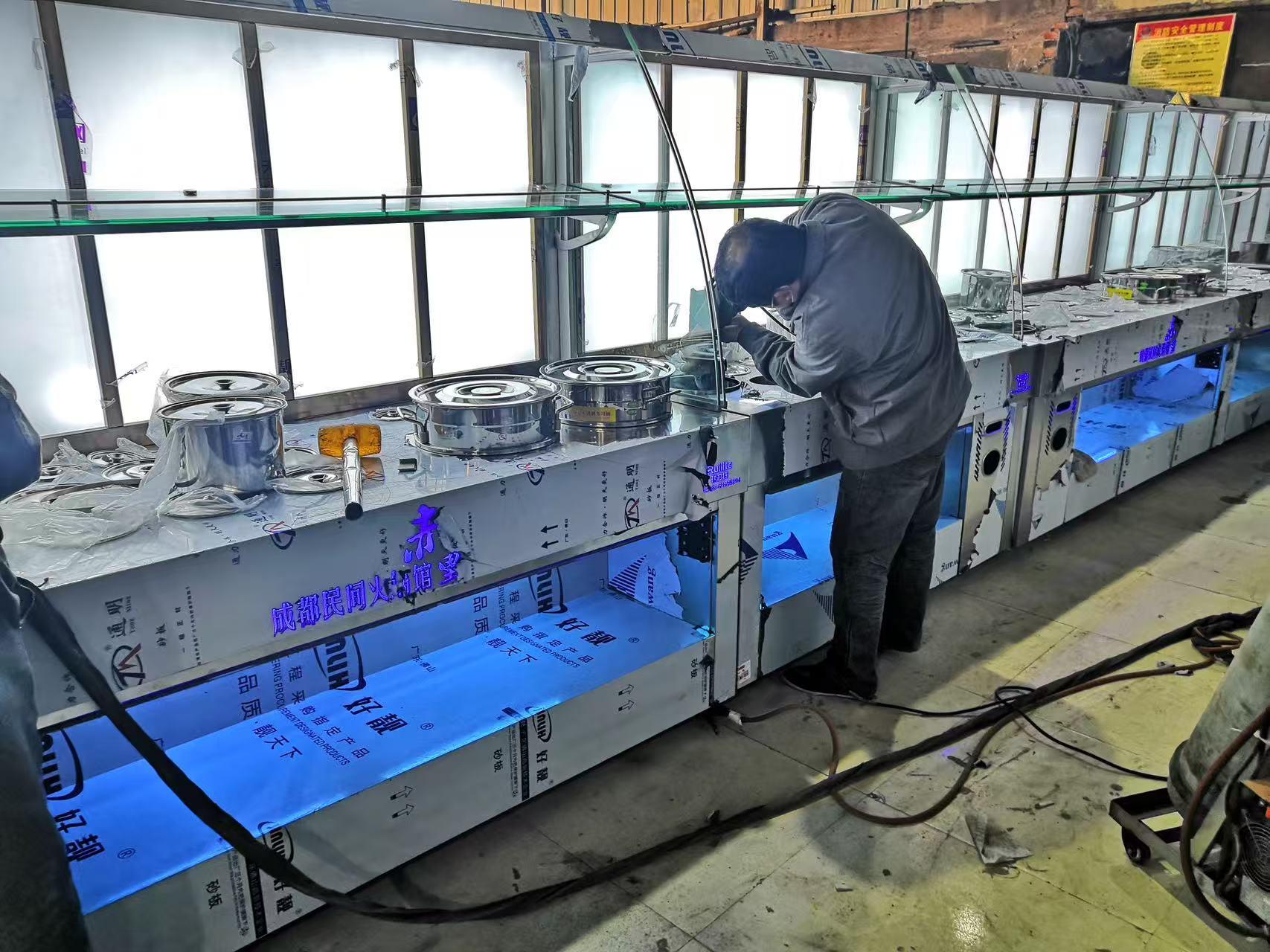公司拥有一支专业的团队,在职生产人员36人,他们具备熟练的生产技能,能够保障产品的高效生产;安装售后服务团队9人,随时为客户提供及时、周到的服务;销售服务团队8人,为客户提供专业的产品咨询和销售服务;专业设计研发团队6人,不断对产品进行研发和创新。多年来,公司服务了全国10000 + 餐饮门店,在每个门店设备使用过程中不断回访,优化设备,从结构和功能上优化来满足客户不同需求,让定制标准化,关键是设备好用、耐用还不贵,得到了**与行业的一致认可。像老柿场菜市火锅、天府坝子火锅、牛很鲜潮汕火锅、袁记串串香等都是公司的特定供货商。