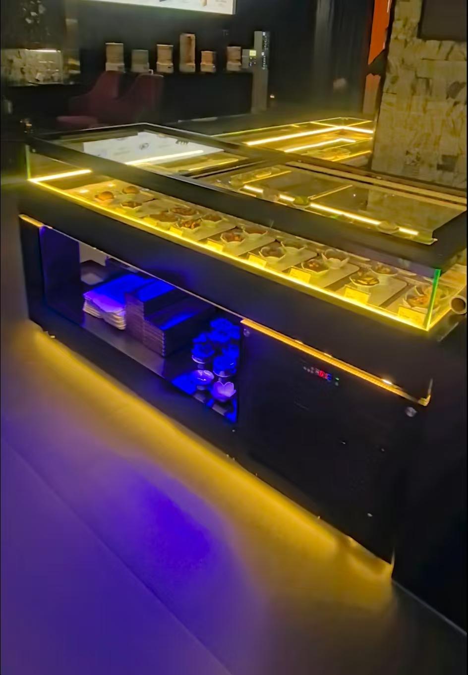 **熟食展示柜**:专门用于展示熟食,如卤味、烤鸡、烤鸭等。它能够保持熟食的温度和卫生,防止熟食变质和受到污染。熟食展示柜通常采用密封设计,能够有效阻挡外界的灰尘和细菌,同时内部的照明系统能够突出熟食的色泽和质感,吸引顾客的注意力。