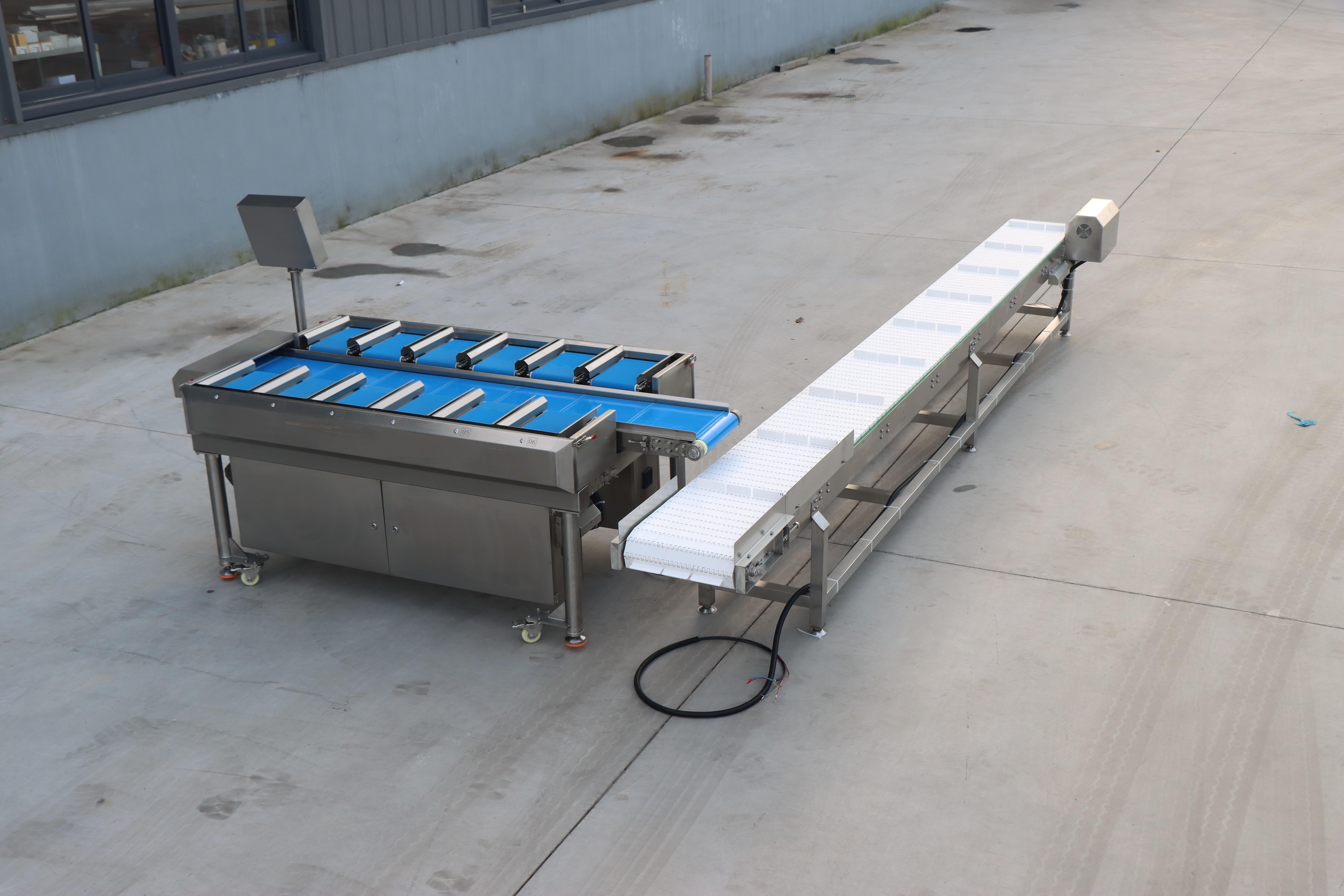 榴莲多工位组合秤:专门针对榴莲这种水果的特点进行设计。榴莲的果肉大小、形状差异较大,传统的秤重设备很难满足其**秤重的需求。而榴莲多工位组合秤通过多工位的设计,可以同时对多个榴莲果肉进行秤重组合,大大提高了秤重的效率和准确性。其结构设计合理,材质符合食品级安全要求,能够保证榴莲果肉在秤重过程中的卫生和安全,适配食品加工连续化、自动化生产场景。