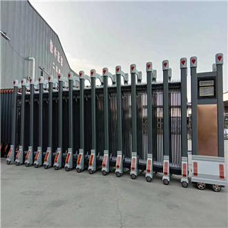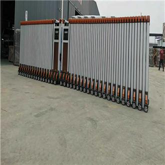 分段式伸缩门:分段式设计使得伸缩门在收缩和展开时更加灵活。每一段之间可以独立运动,能够更好地适应不同的地形和空间需求。这种伸缩门的结构坚固,使用寿命长,对于一些空间有限或者地形复杂的场所来说是较好的选择。