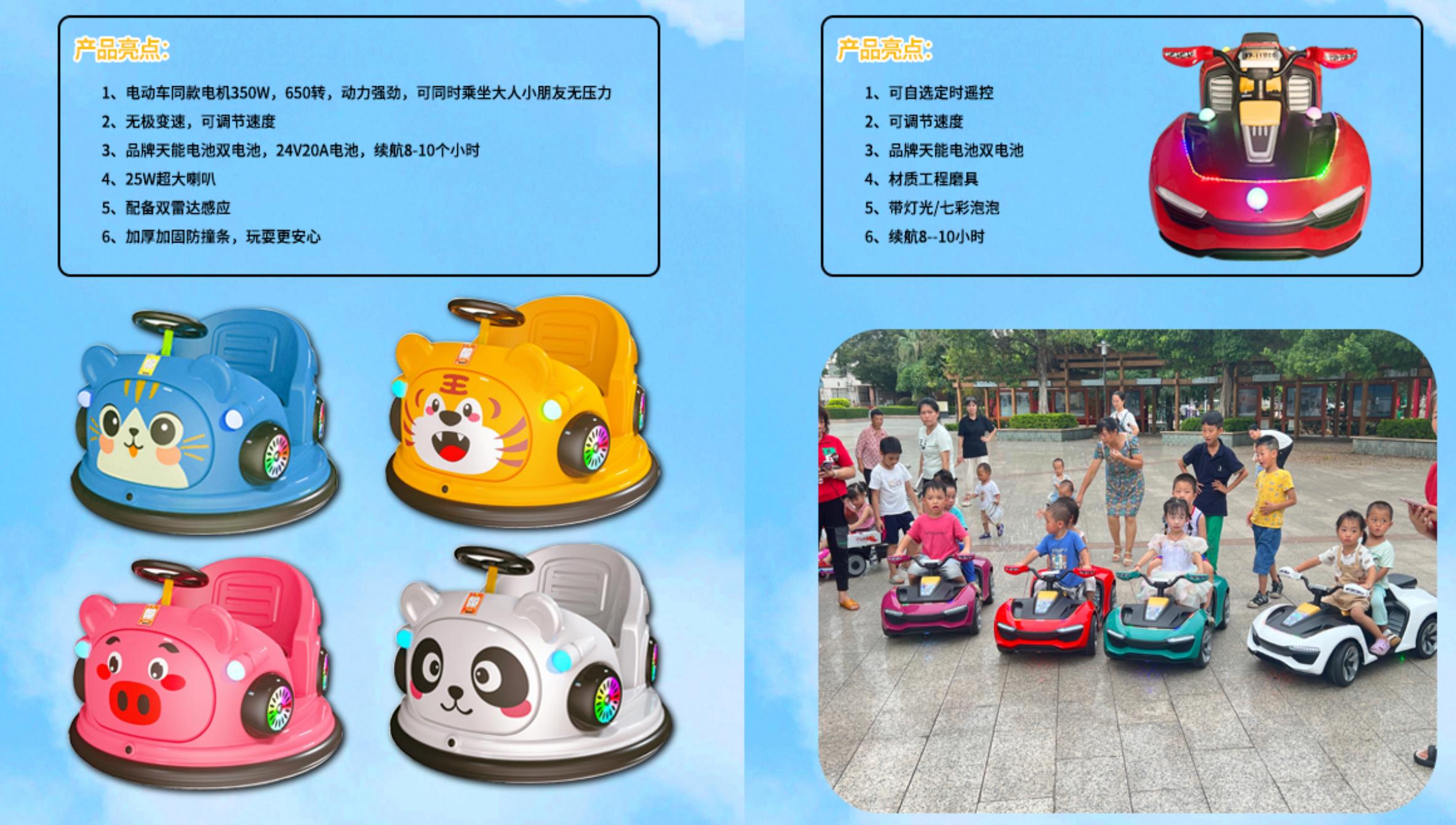 从性能特点来看,电力与续航方面,主流产品电压为220v,不同品类功率适配使用需求(如赛车机150w/450w、一体版主机500w);多款泡泡类设备续航能力优异,泡泡碰碰车、四驱车续航可达8 - 10小时,泡泡一体虎配备更大锂电池,续航更持久。操作与体验上,支持扫码 + 投币双支付方式,贴合市场使用习惯;部分产品配备无极变速、可调节速度功能,适配不同年龄段儿童;彩票机类产品配备高清液晶显示屏,操作符合人体工学,七彩按钮与炫彩摇杆带来优秀视觉体验。功能与音效方面,多数产品配备产品音乐,泡泡一体虎搭载3D环绕低音炮,打造沉浸式听觉体验;泡泡类设备兼具喷泡泡、碰撞、灯光等多种趣味功能,部分支持远程遥控 + 手动双操作模式。材质与工艺上,产品主要采用五金 + 木材、五金 + 吸塑、工程磨具等优质材质,工艺精良,部分产品重量控制合理(如泡泡单车约12kg),便于移动与摆放。