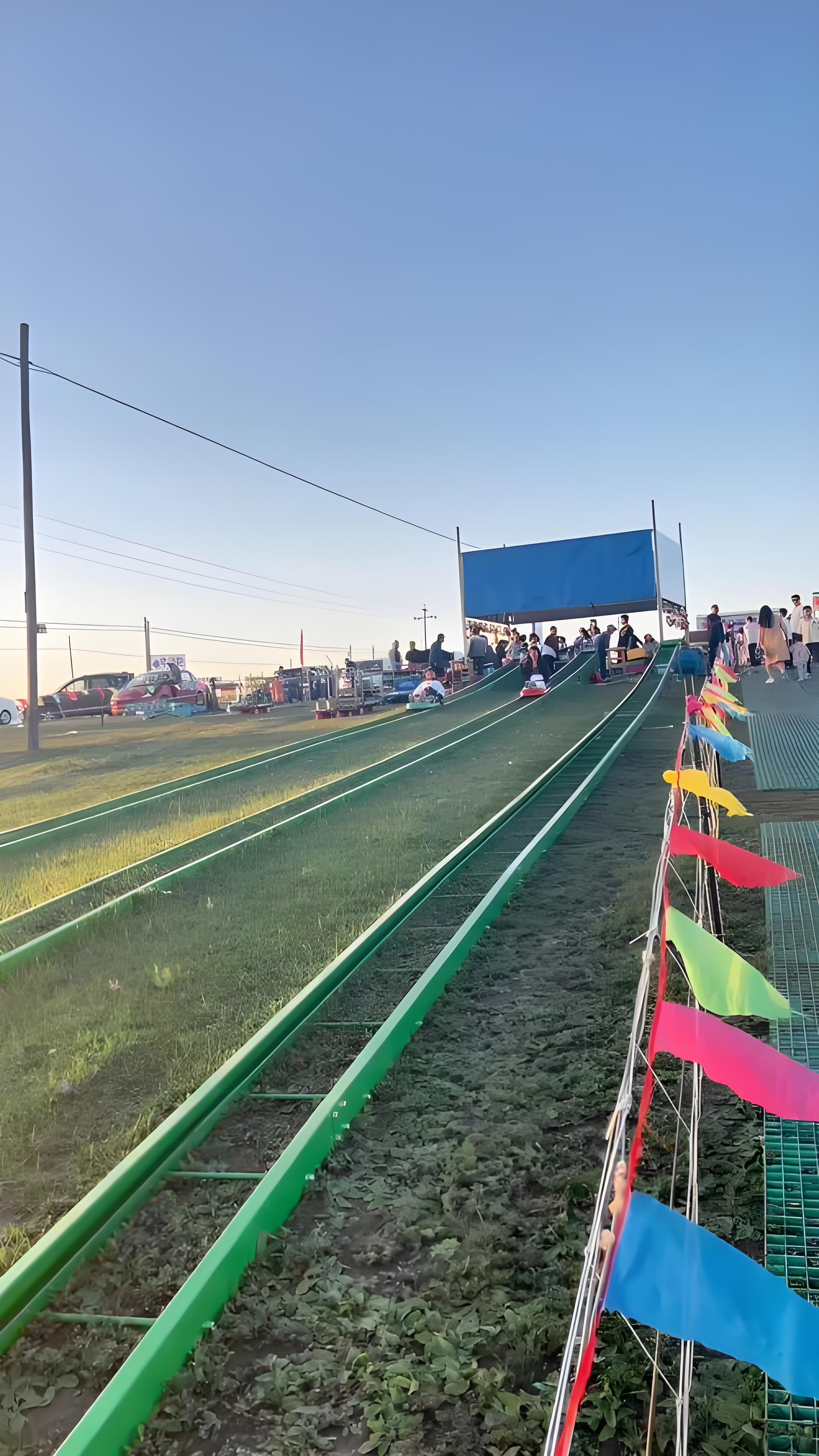 山地滑道适合建在山地景区,借助山地的自然地形,让游客在滑行过程中感受刺激与速度,同时欣赏周边的自然风光。彩虹滑道色彩鲜艳,如同彩虹一般绚丽,能吸引众多游客的目光,尤其受到儿童和年轻人的喜爱。草原滑道则能让游客在广袤的草原上尽情滑行,享受自由奔放的感觉。七彩滑道以其丰富的色彩组合,营造出欢快的氛围,为游乐增添乐趣。超宽彩虹滑道则提供了更宽敞的滑行空间,可多人同时滑行,增加了游玩的互动性和趣味性。