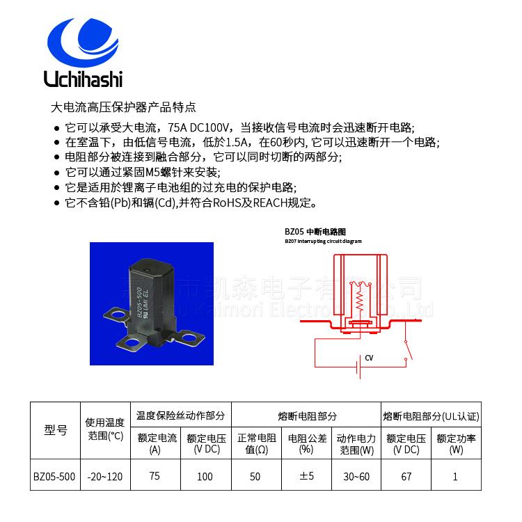 惠州市凯森电子有限公司主要代理经营UMI内桥品牌的多种产品,包括温度保险丝、三端保险丝、水泥电阻、助焊剂、助焊膏、焊锡丝等。其中,三端保险丝是公司的主营产品之一,涵盖了BBU三端保险丝、ESS三端保险丝、光伏三端保险丝、户储三端保险丝等多种类型,并且公司还是三端保险丝的批发厂家。
