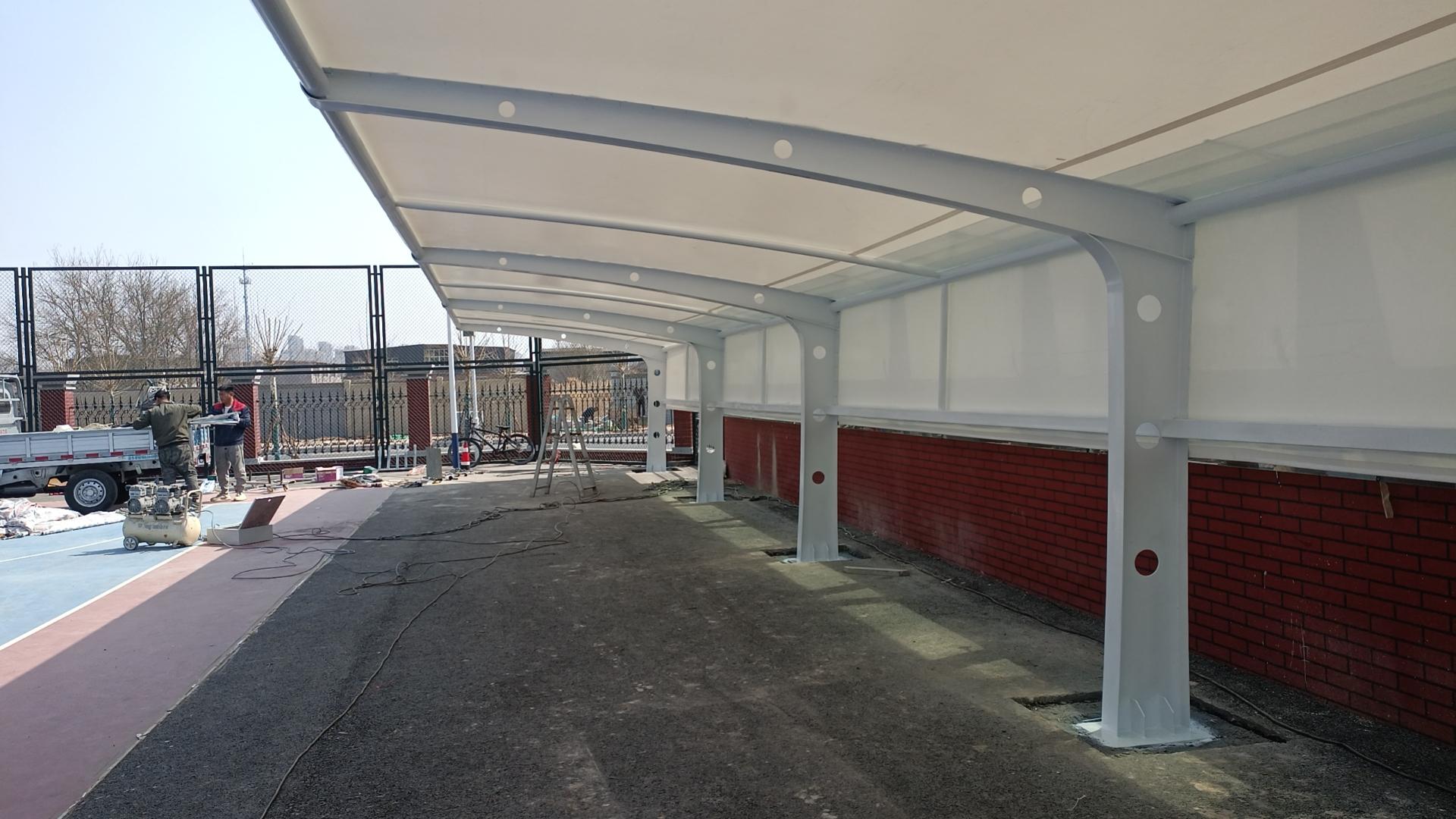 膜结构体育看台订做可以为体育赛事提供舒适、安全的观赛环境。在施工过程中,沧州华彪膜结构工程有限公司有着严格的施工标准。例如,膜结构停车棚其两个密封材料之间必须有热熔焊接,不允许有焊缝存在,以确保其强度足够大,水密封性能良好。
