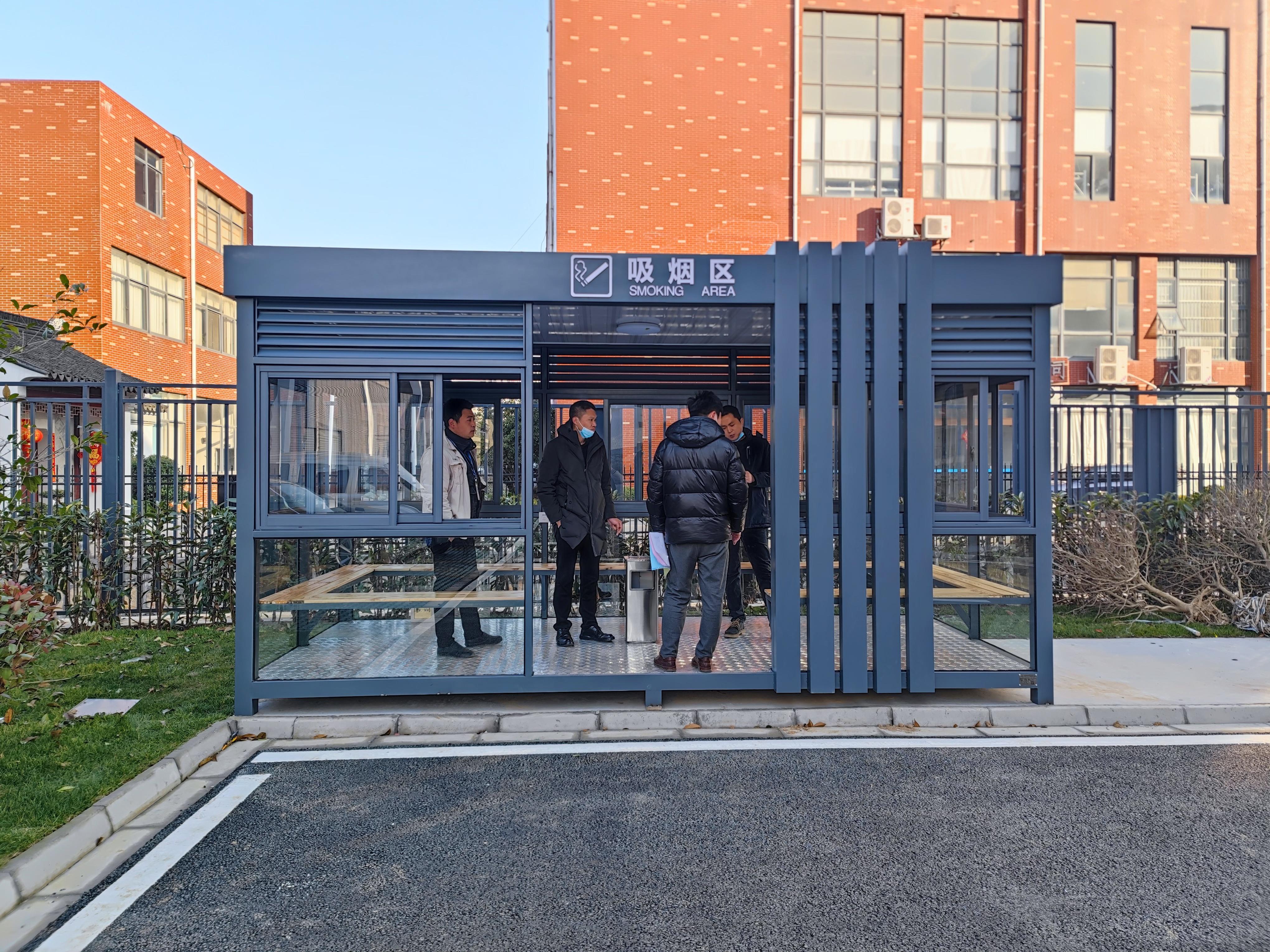 而亭老大则更侧重于功能性与场景普适性,在民生与工业配套场景中优势显著。在江西上饶的工业园区内,其定制的钢结构吸烟岗亭配备了高效排烟系统与防火设施,为企业员工提供了安全合规的吸烟区域,既满足了厂区管理需求,又体现了人文关怀;上海某大型物流园区的门卫岗亭,采用高强度钢材与模块化设计,集成了人脸识别、货物登记等功能,大幅提升了园区出入口的通行效率与安全管控水平。