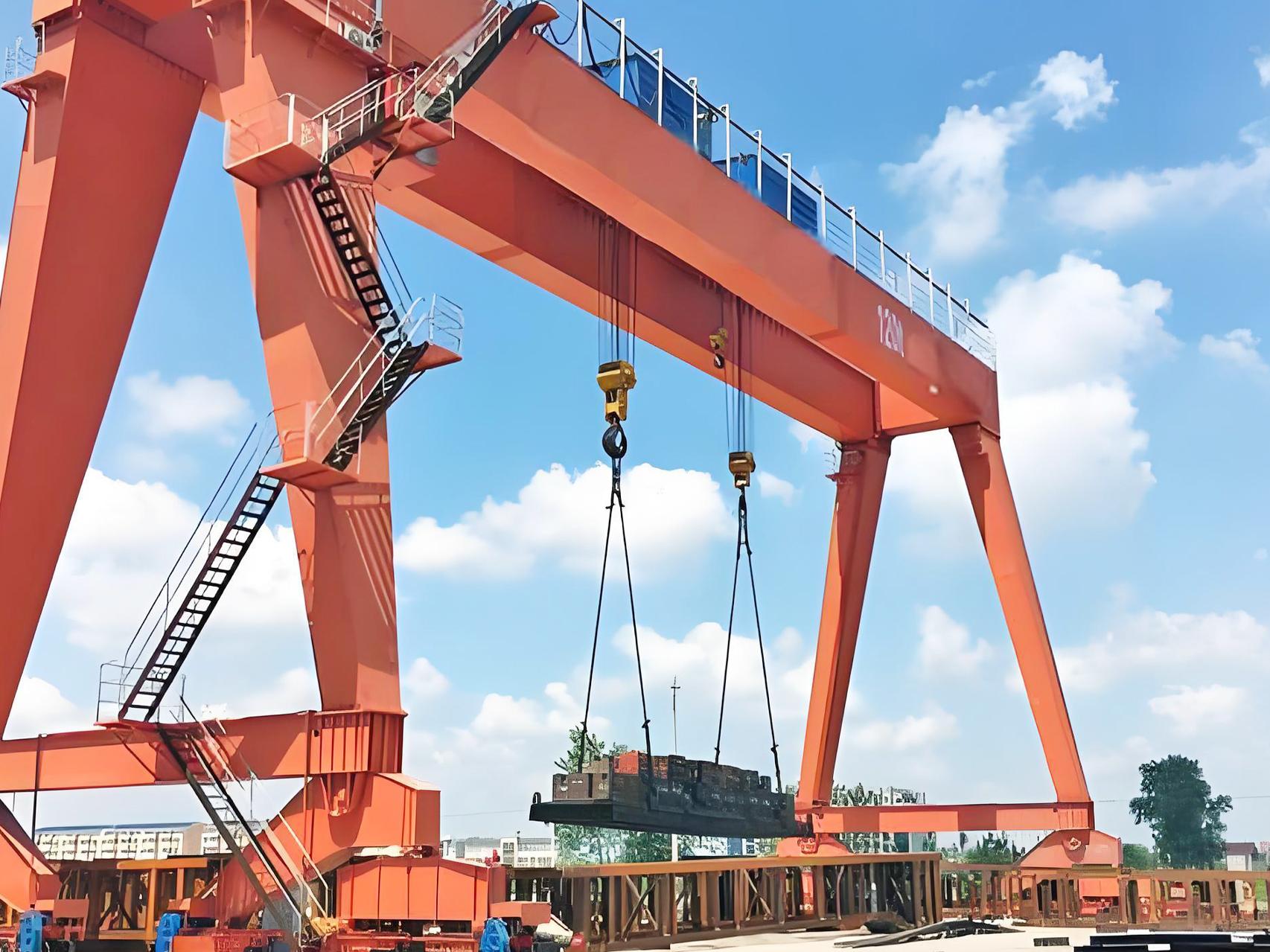 集装箱龙门吊:是专门为集装箱的吊运和装卸而设计的。它具有起重量大、跨度大、工作级别高的特点。在港口、码头等集装箱集散地,集装箱龙门吊能够快速、准确地完成集装箱的吊运和堆码作业,大大提高了物流运输的效率。