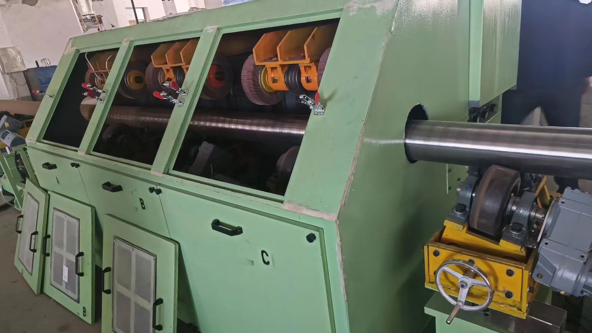 钢管内外抛光设备不仅可以对钢管的外表面进行抛光,还能对钢管的内表面进行精细处理,确保钢管内外表面都达到理想的光洁度。其独特的设计和先进的技术,使得抛光过程更加稳定、高效。