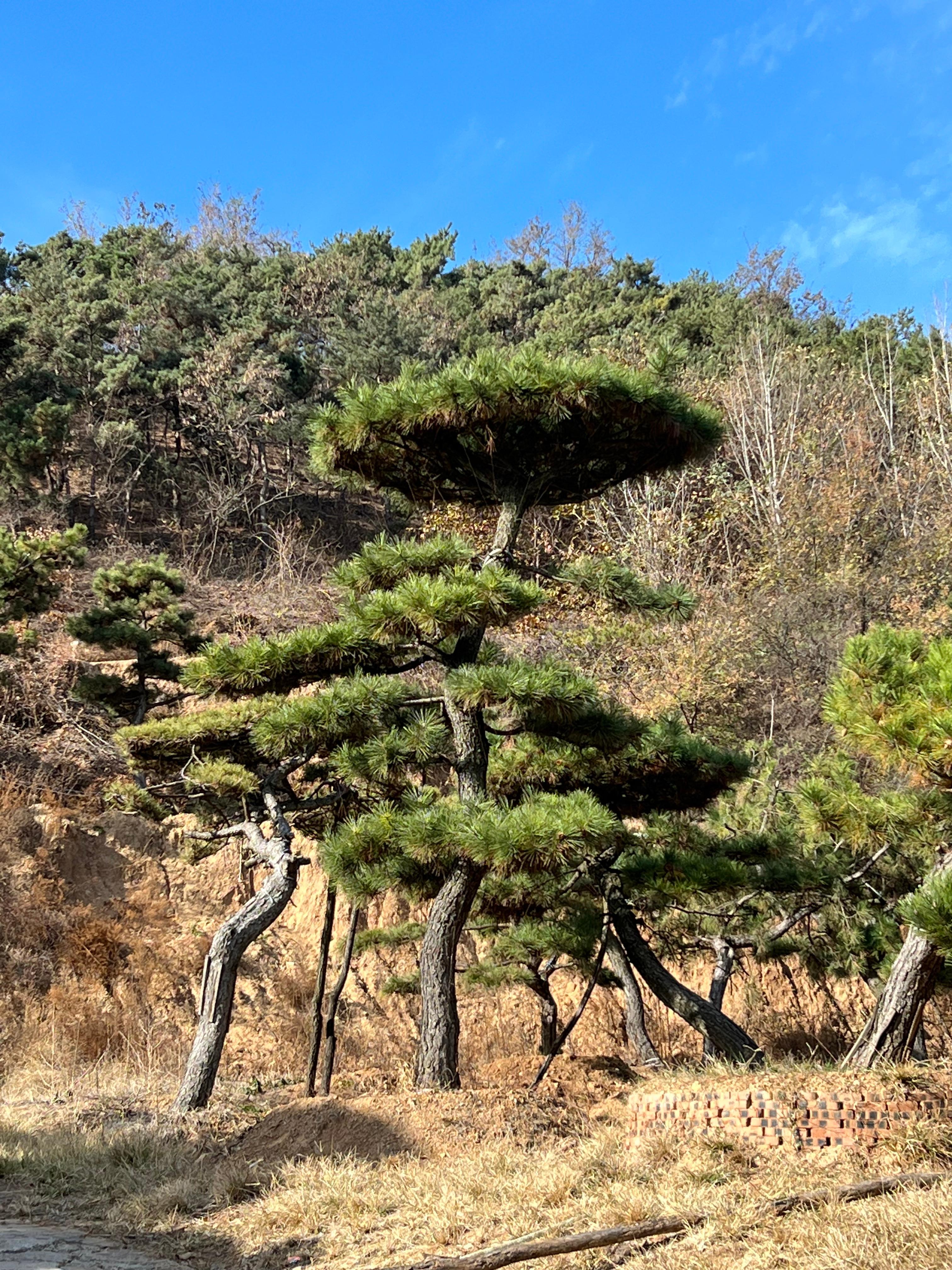 造型油松基地直销的造型油松,也是公司的主打产品之一。油松的树干挺拔,树冠呈塔形,具有很高的观赏价值。它在北方地区广泛种植,是城市绿化和乡村绿化的常用树种。