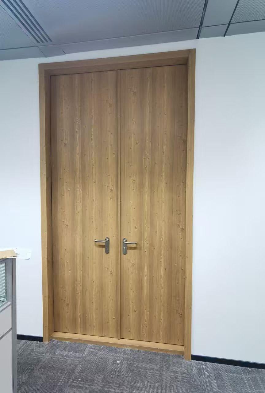 在防火等级方面,有声闸特制钢质木纹转印隔声门(单扇双扇),GZF甲 - 2.4X3.0双开大尺寸,GZF甲 - 1.2X3.0单扇大尺寸。门扇和门框组成采用1.5mm厚优质镀锌钢板 + 高性能阻尼隔音材料,内部结构填充新阻尼材料,损耗因子为0.68,密度为1.55g/cm3。