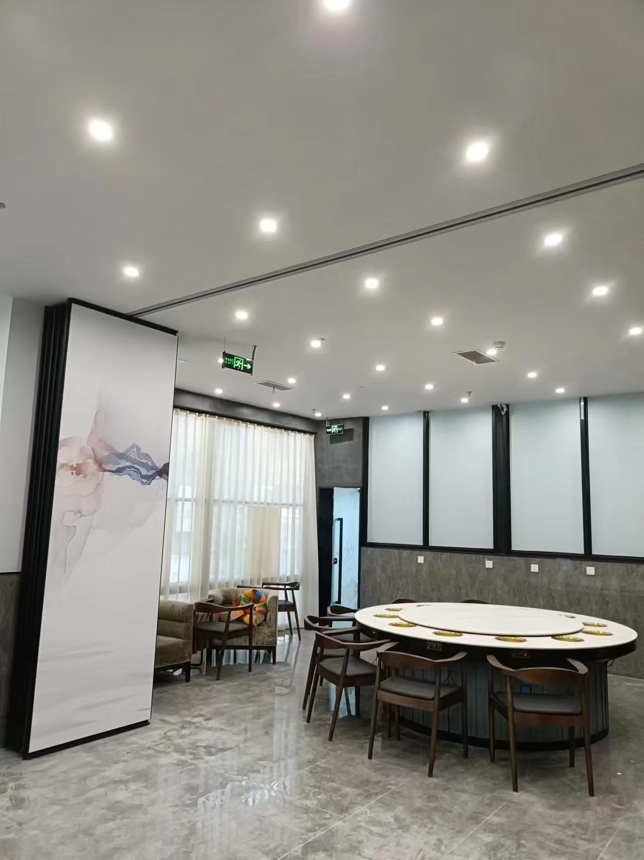其中,包间移动隔断作为源头产品,具有很强的灵活性。它可以根据包间的实际需求,随时调整空间大小,满足不同规模聚会的需求。在酒店的餐饮包间中,使用包间移动隔断可以在高峰时段增加包间数量,提高空间利用率;在非高峰时段,又可以将隔断打开,形成更大的空间,举办小型活动。