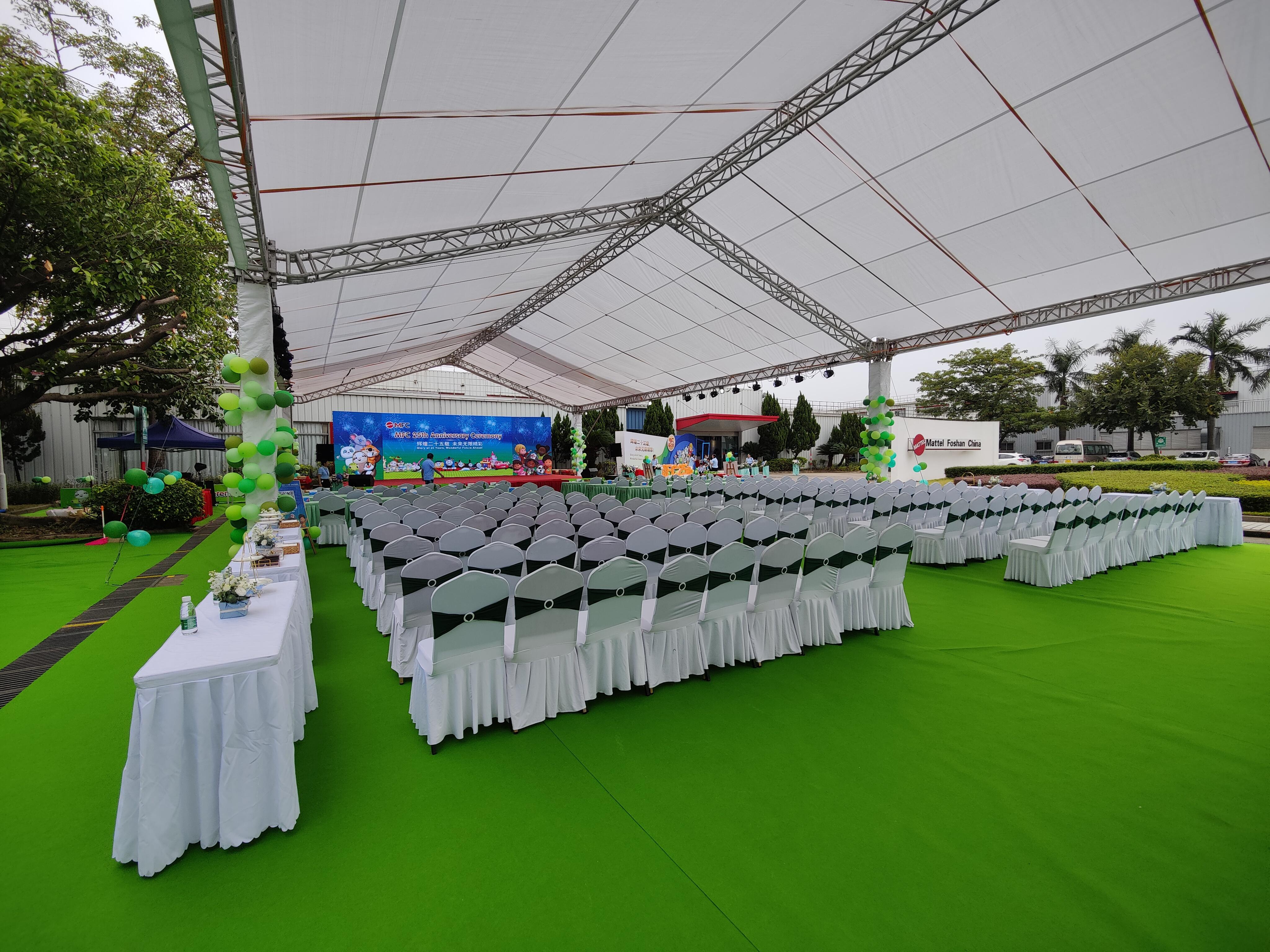 佛山市轩庆庆典礼仪有限公司始终坚守 “品质为先” 原则。所有租赁物料均经过严格筛选与定期维护,确保性能稳定、外观整洁。例如,桌椅类产品采用优质材质,结构稳固、承重性强,款式涵盖宴会椅、贵宾椅、水晶椅等类型,能够适配不同档次的活动;户外帐篷、舞台等设备选用耐用型材,搭建稳固、抗风性佳,符合安全标准;降温设备、背景板、地毯等配套用品均选用品质可靠的产品,功能完好、视觉效果佳。公司还建立了完善的设备检修机制,每场活动前都会进行全面调试与检查,杜绝设备故障,以高质量的物料为活动效果保驾护航。