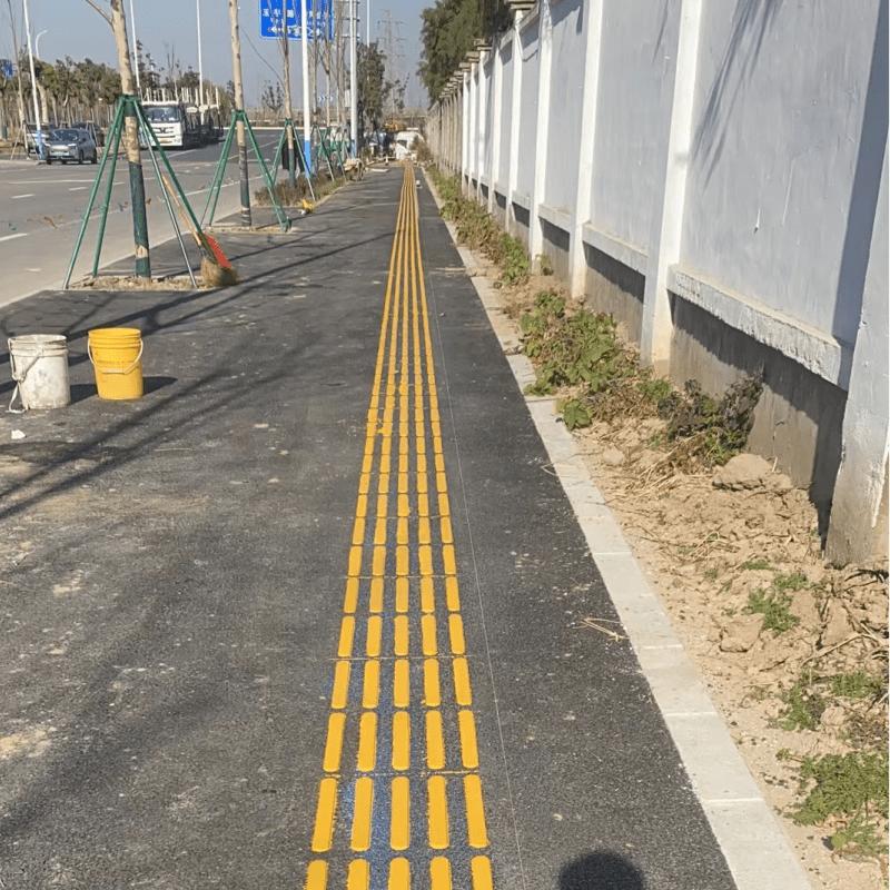 河南彩途合成材料有限公司的现浇金刚盲道产品在实际应用中有着广泛的用途。在市政道路中,它可以为盲人提供清晰的引导,保障他们的出行安全。在景区,不仅能满足盲人的通行需求,还能与景区的整体环境相融合,提升景区的品质。在校园,为学生创造安全的行走环境,尤其是保障视力障碍学生的活动安全。